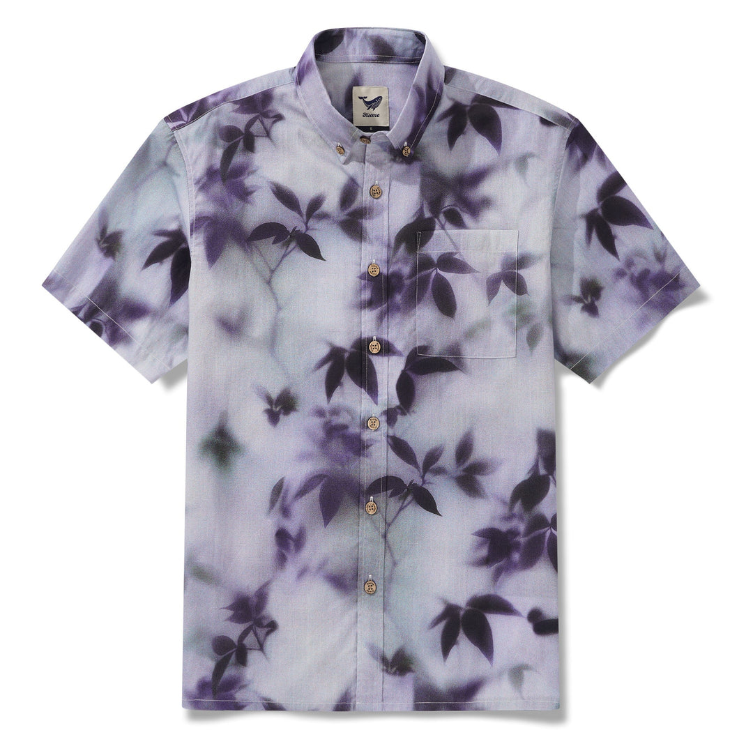 Herren Baumwoll Hawaiian Hemd Kurzärmel Button-Down Purple Aloha Hemd mit Nebel gekettete Blätter