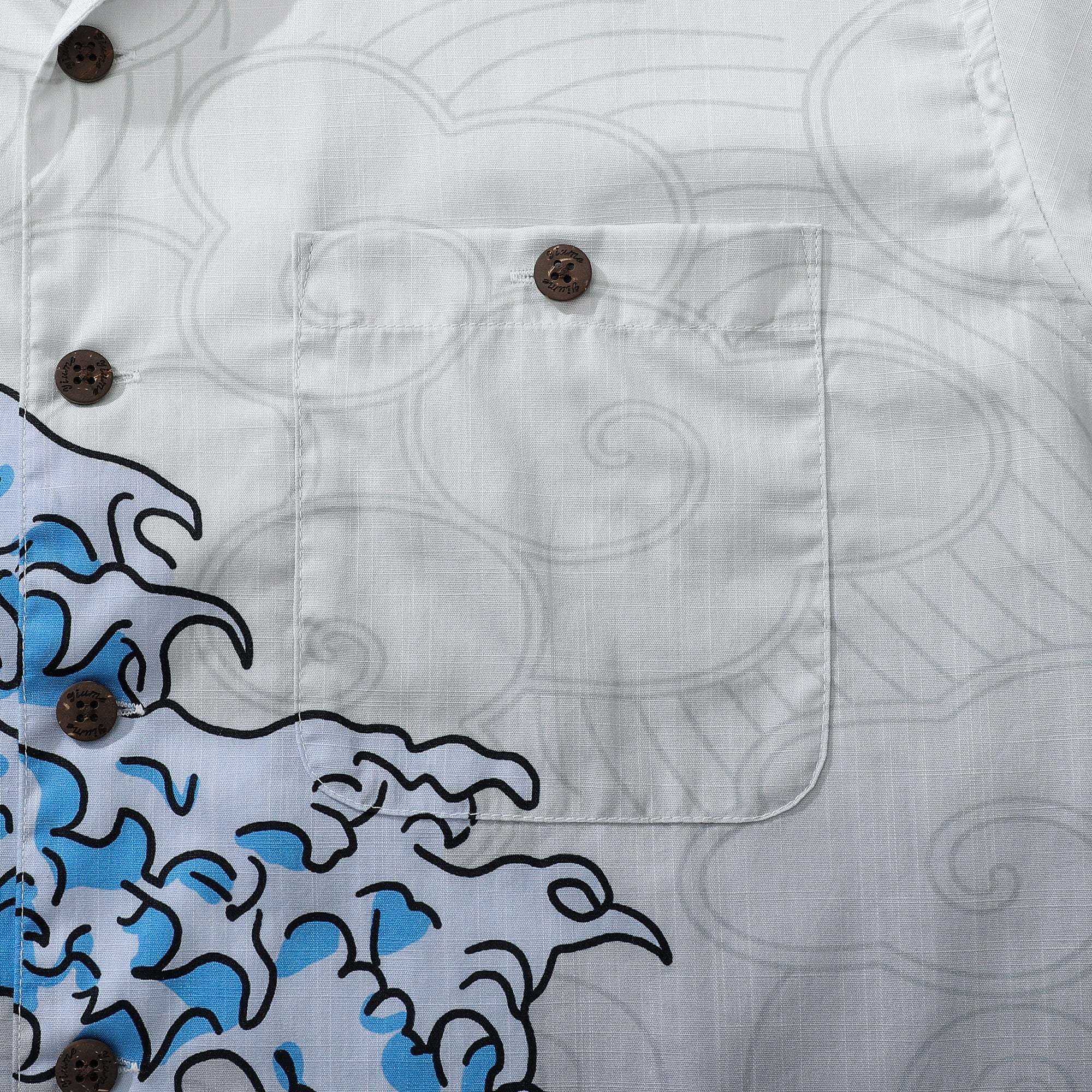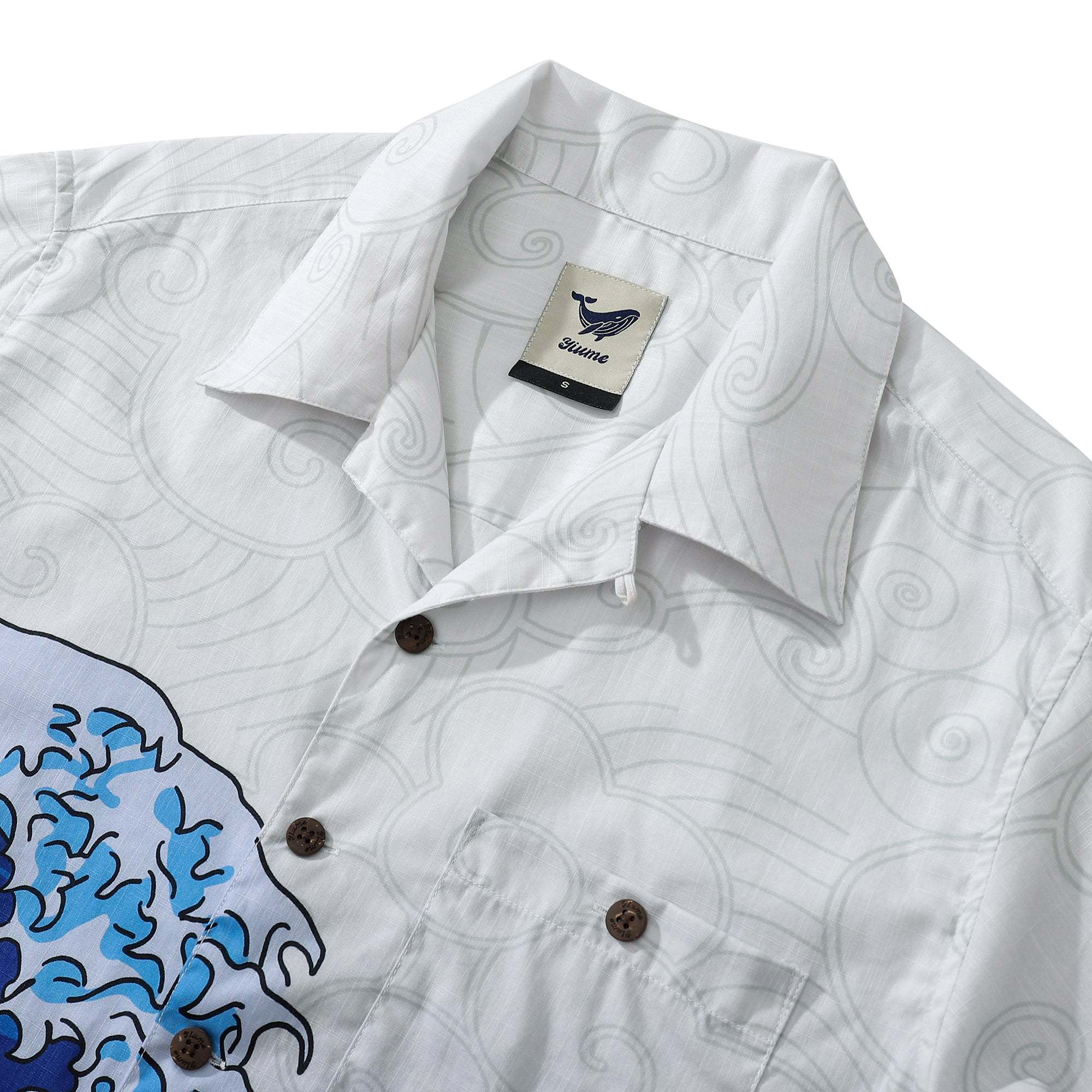 Wellen Hawaiianisches Hemd für Männer Japanisches Aloha Hemd Baumwolle Kurzarm Camp Hemd