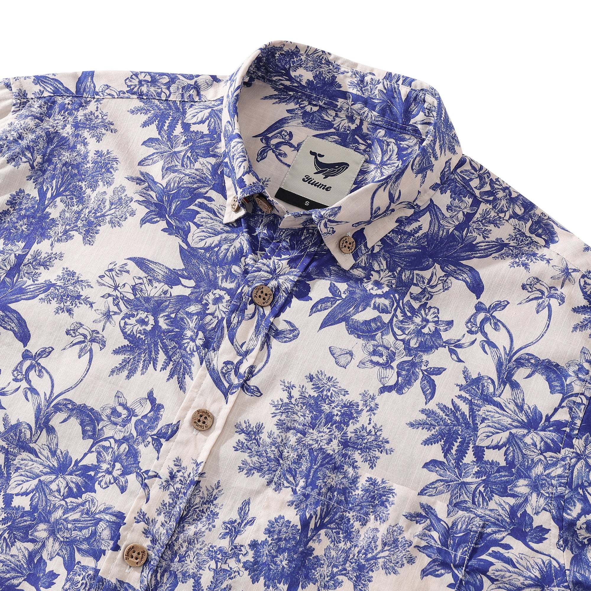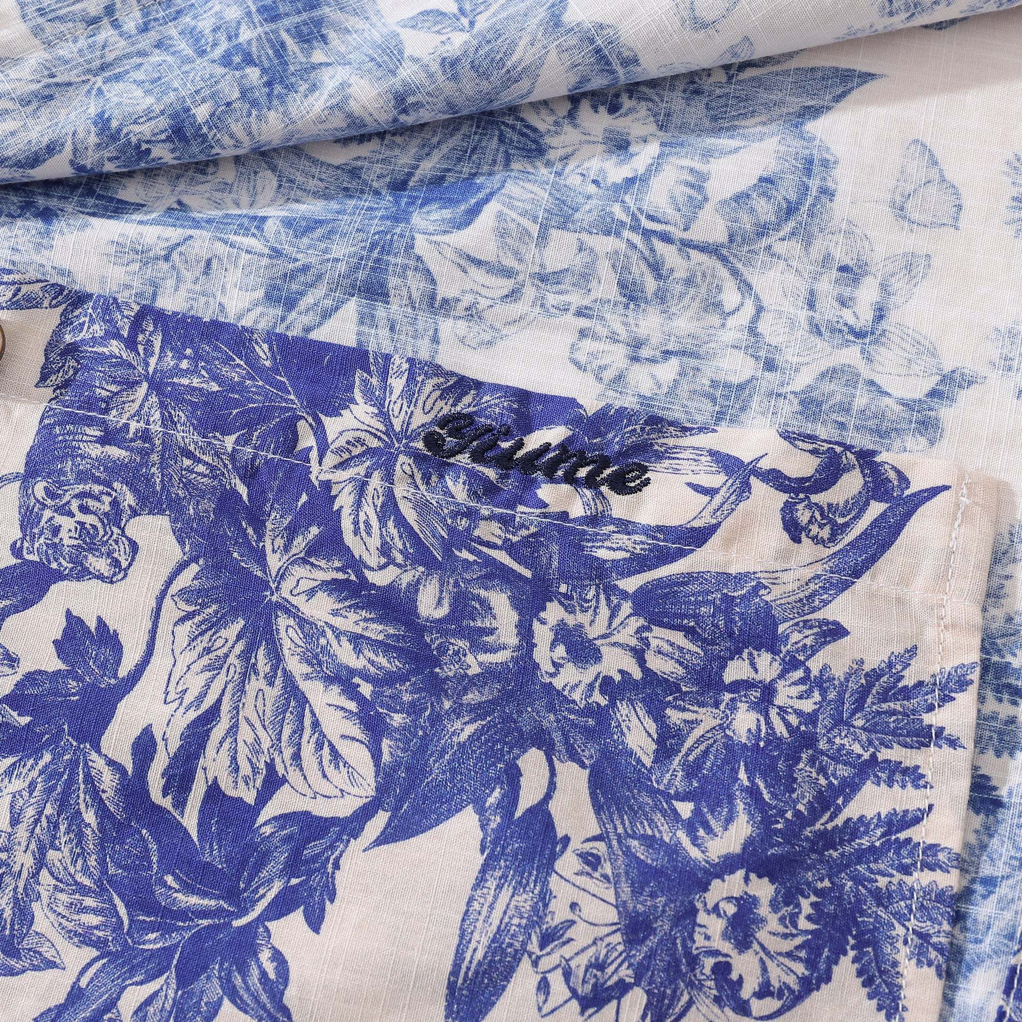• Print-abgestimmte linke Brusttasche und Knopfleiste