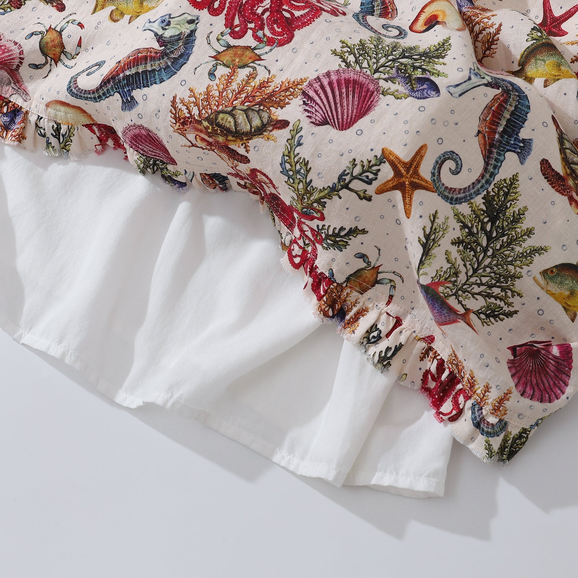 Hawaiian Kleid für Frauen Tropisches Urlaubskleid Meeresleben Seepferdchen Oktopus V-Ausschnitt KleiderÄrmelloses Kleid