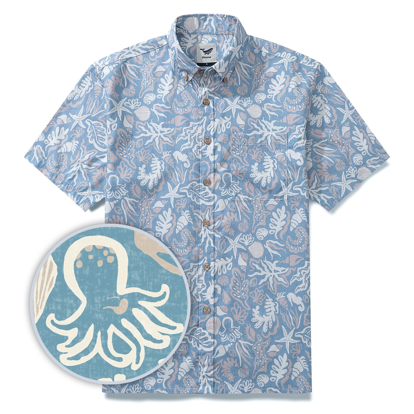 Herren 100% Baumwolle Fischhemd Ozeanisches Hawaiianisches Hemd für Männer