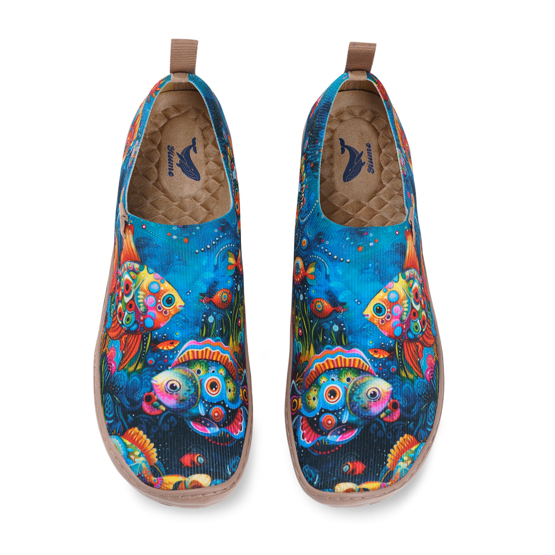 Damen faltbare Loafers Unterwasserwelt Sneaker bemalte Leinenschlupfschuhe
