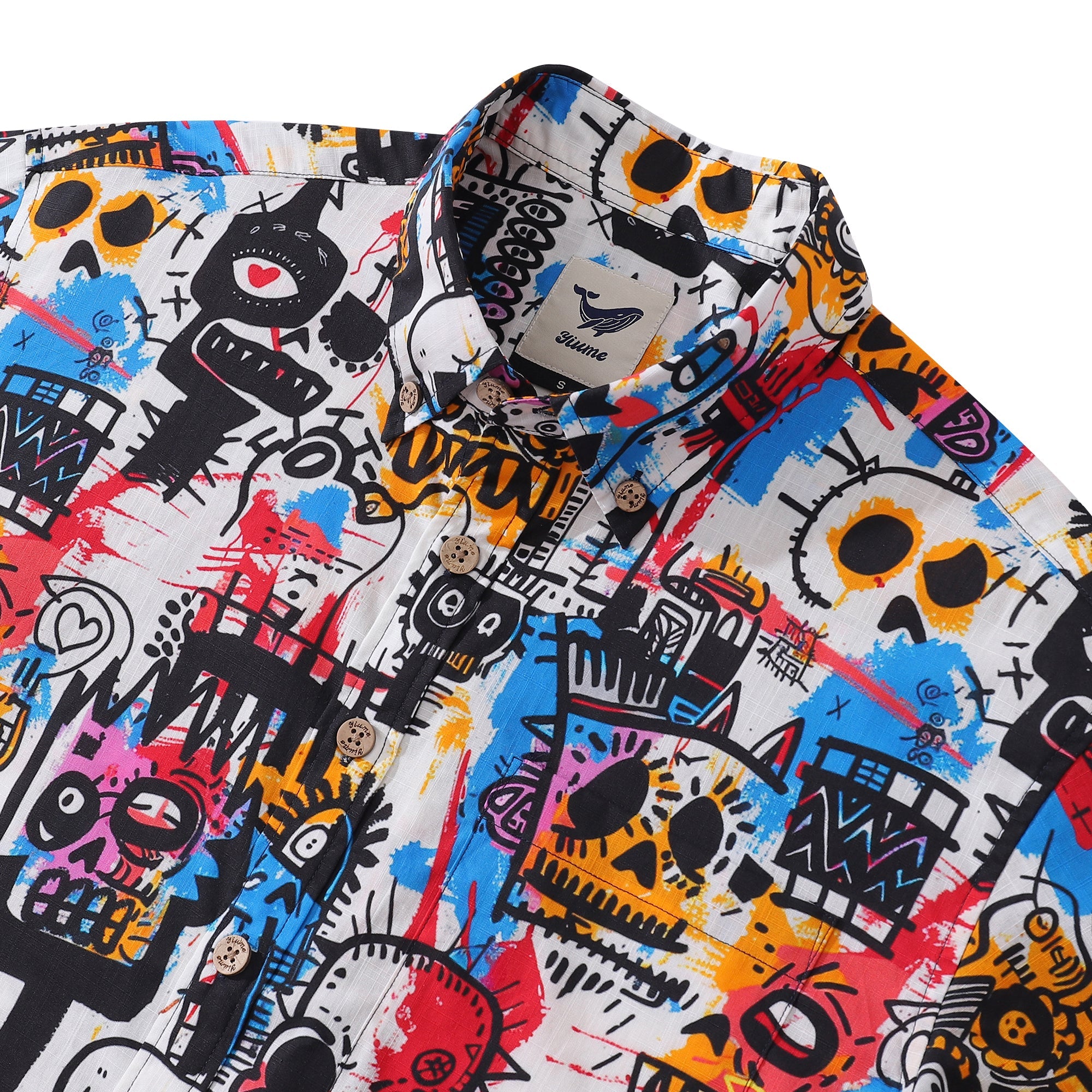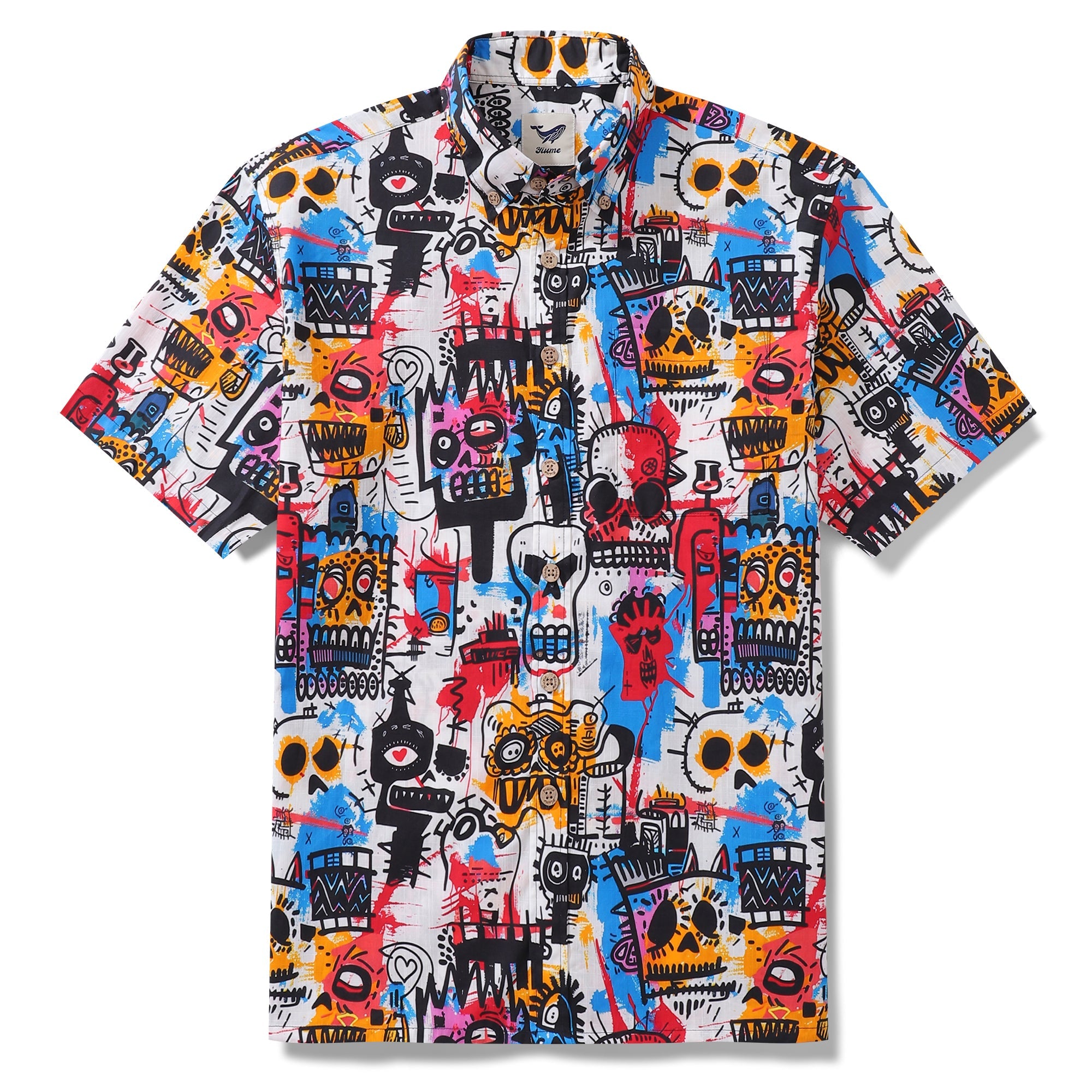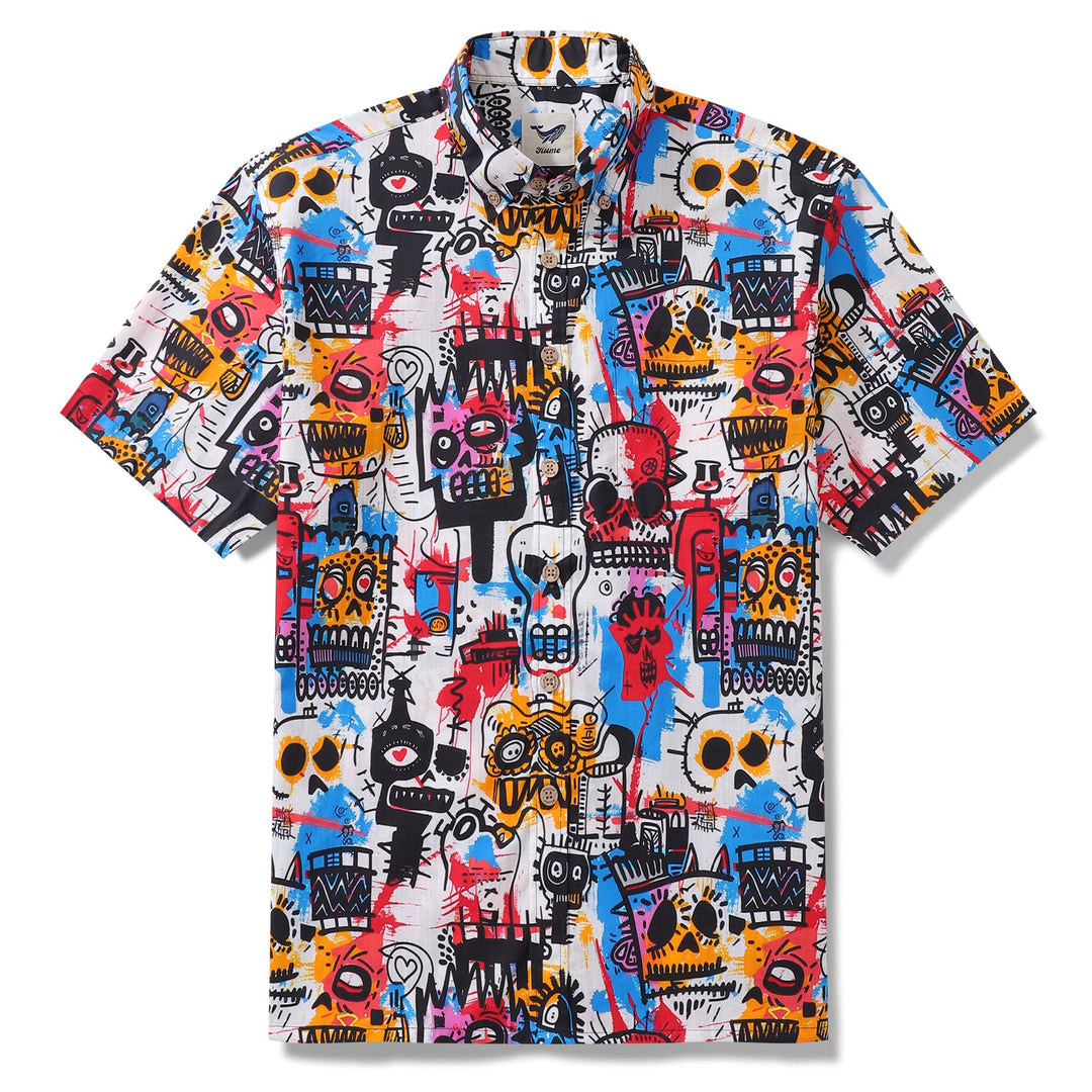 Hawaiian Hemd für Männer Halloween Doodles Button-Down-Hemd Kurzarm 100% Baumwollhemd