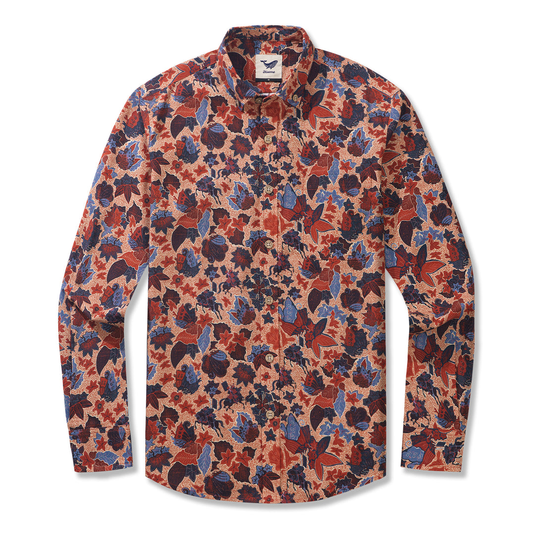 Genji vs. Taira 100% Baumwolle Herren Langarm Hemd mit Knöpfen Rot Aloha Hawaiian