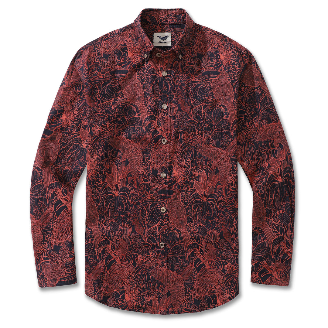 Langärmliges Hawaiian Hemd für Herren Die Welt der Vögel Baumwoll-Knopfhemd Aloha Hemd