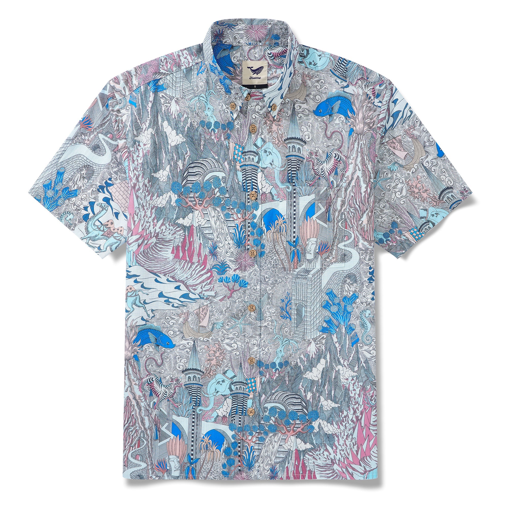 Herren Hawaii-Hemd Kurzarm Knopfverschluss 100% Baumwolle Blau Aloha Kosmisches Wunder