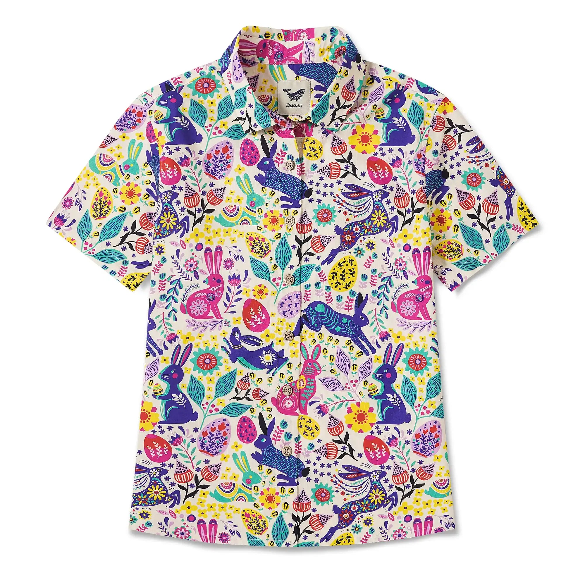 Easter Day Women's Rabbit Hawaiian Shirt Short Sleeve Button-up 100% Cotton Aloha Easter Vibes