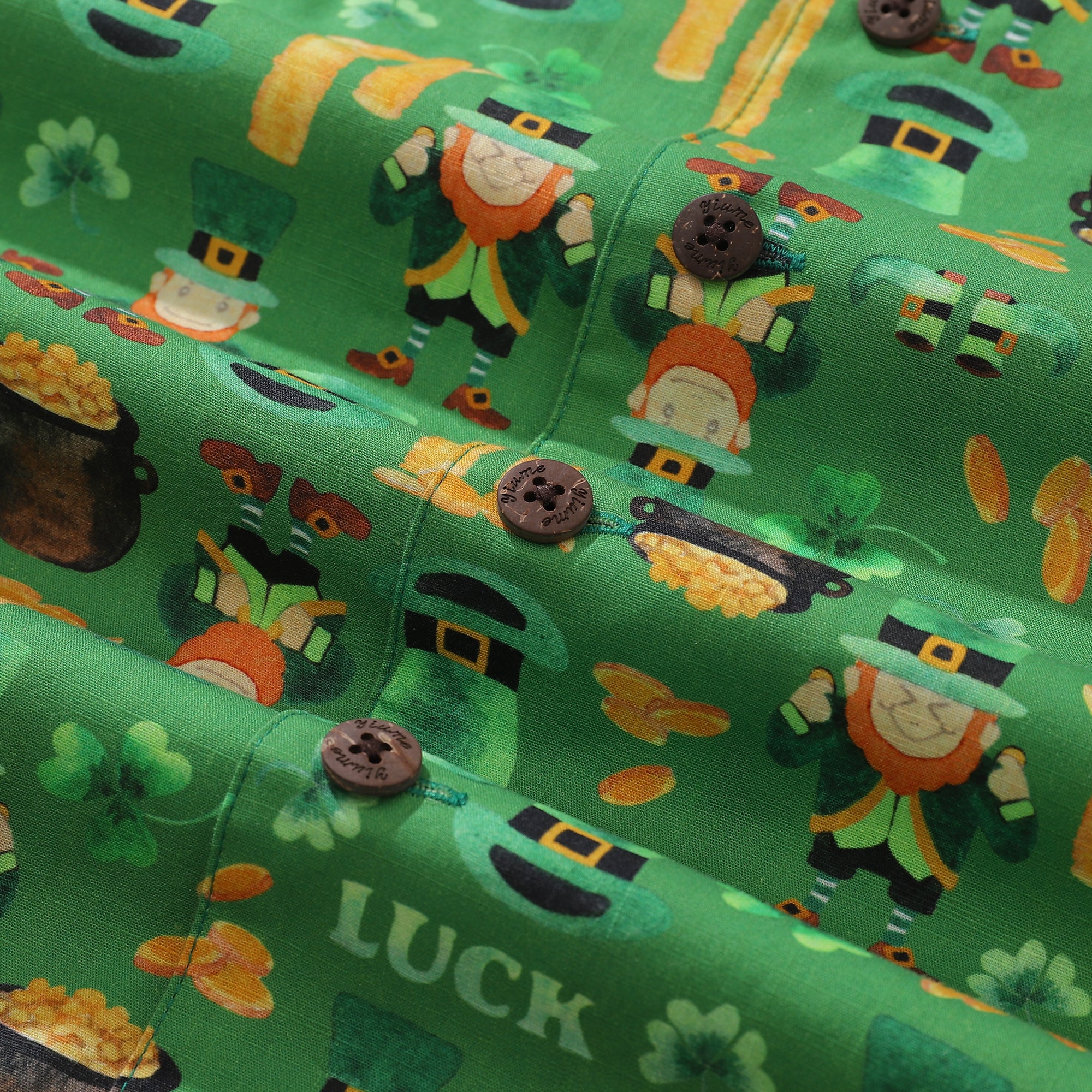 St. Patrick's Day Men's Hawaiian Shirt Short Sleeve Camp Collar 100% Cotton Green Aloha Green Glass Lucky Four-leaf Clover