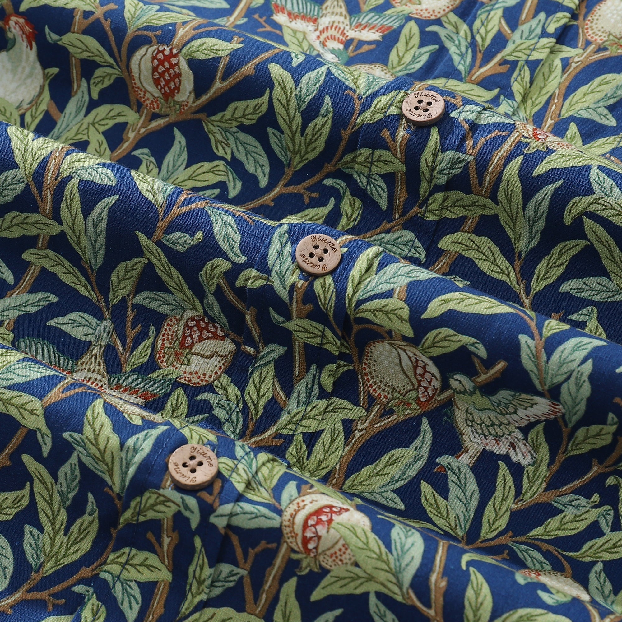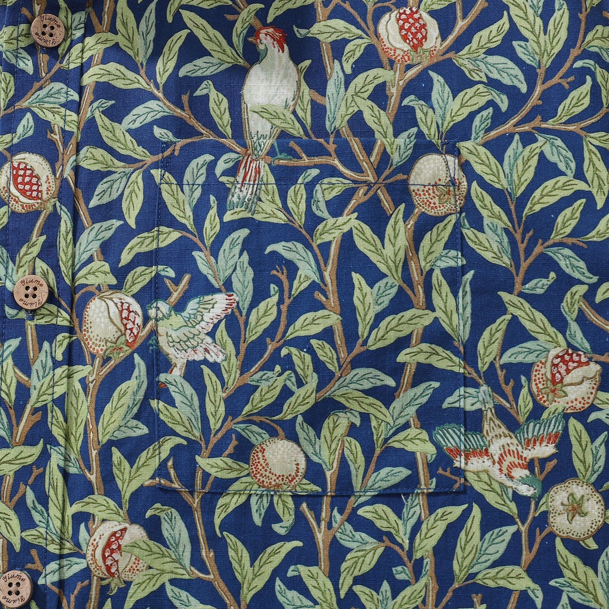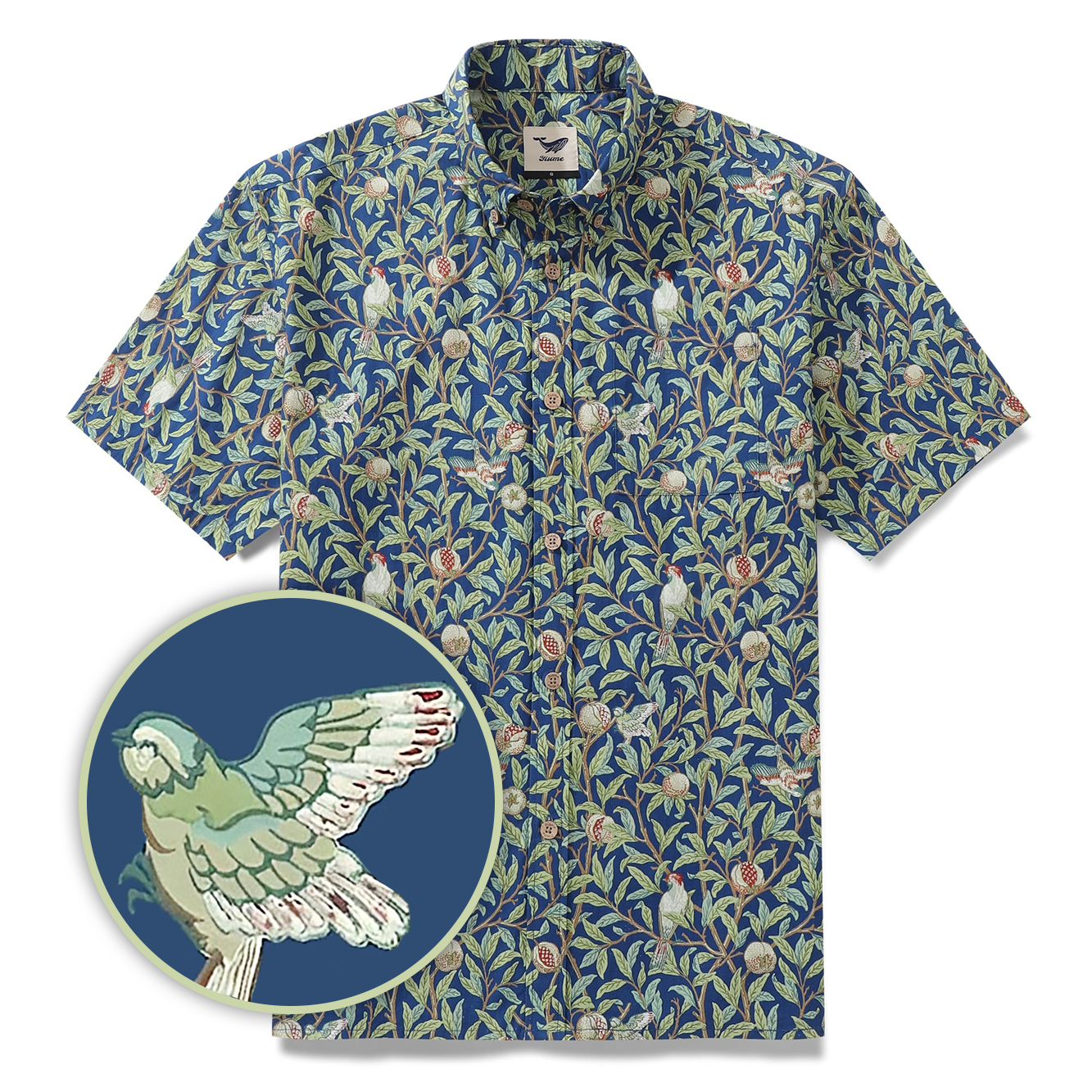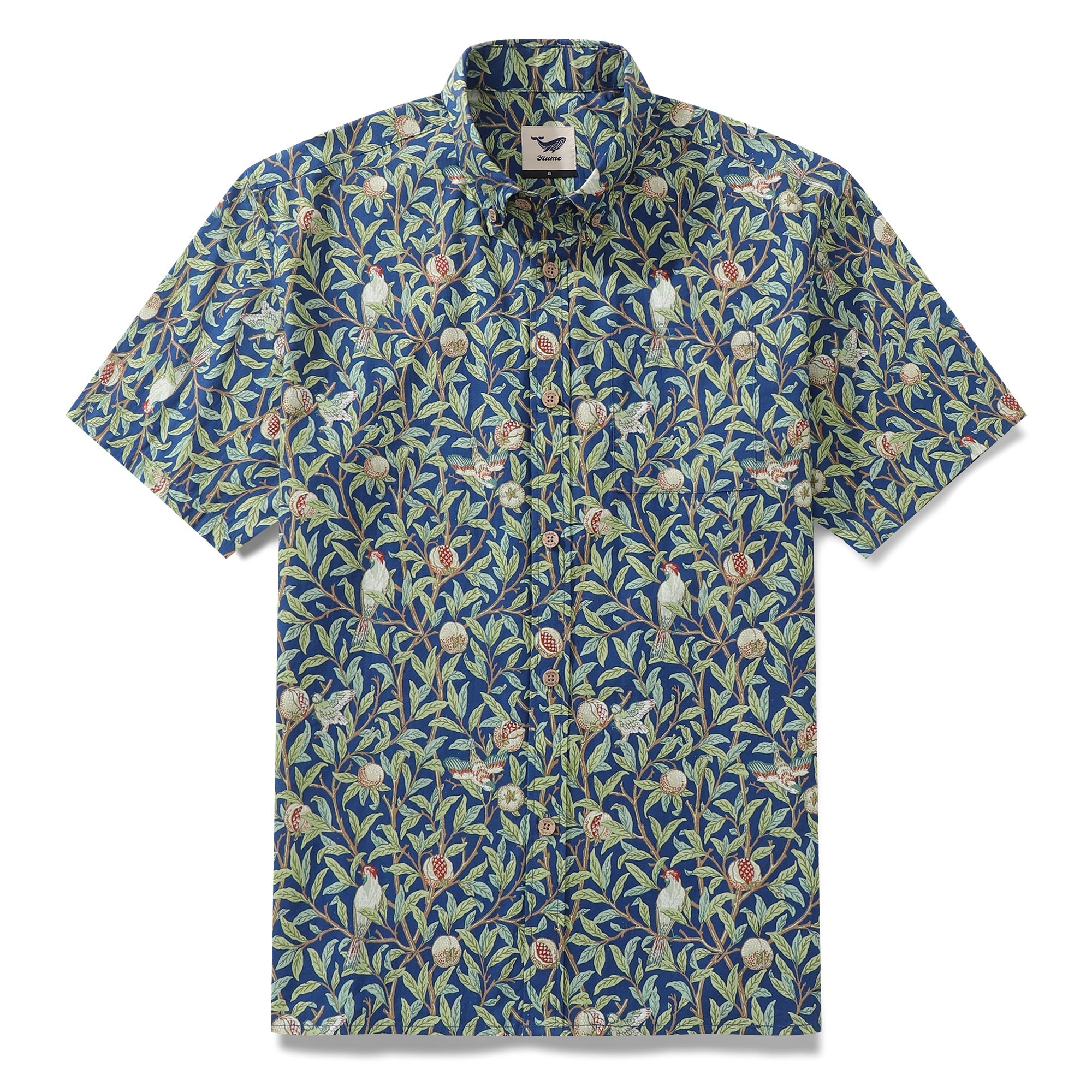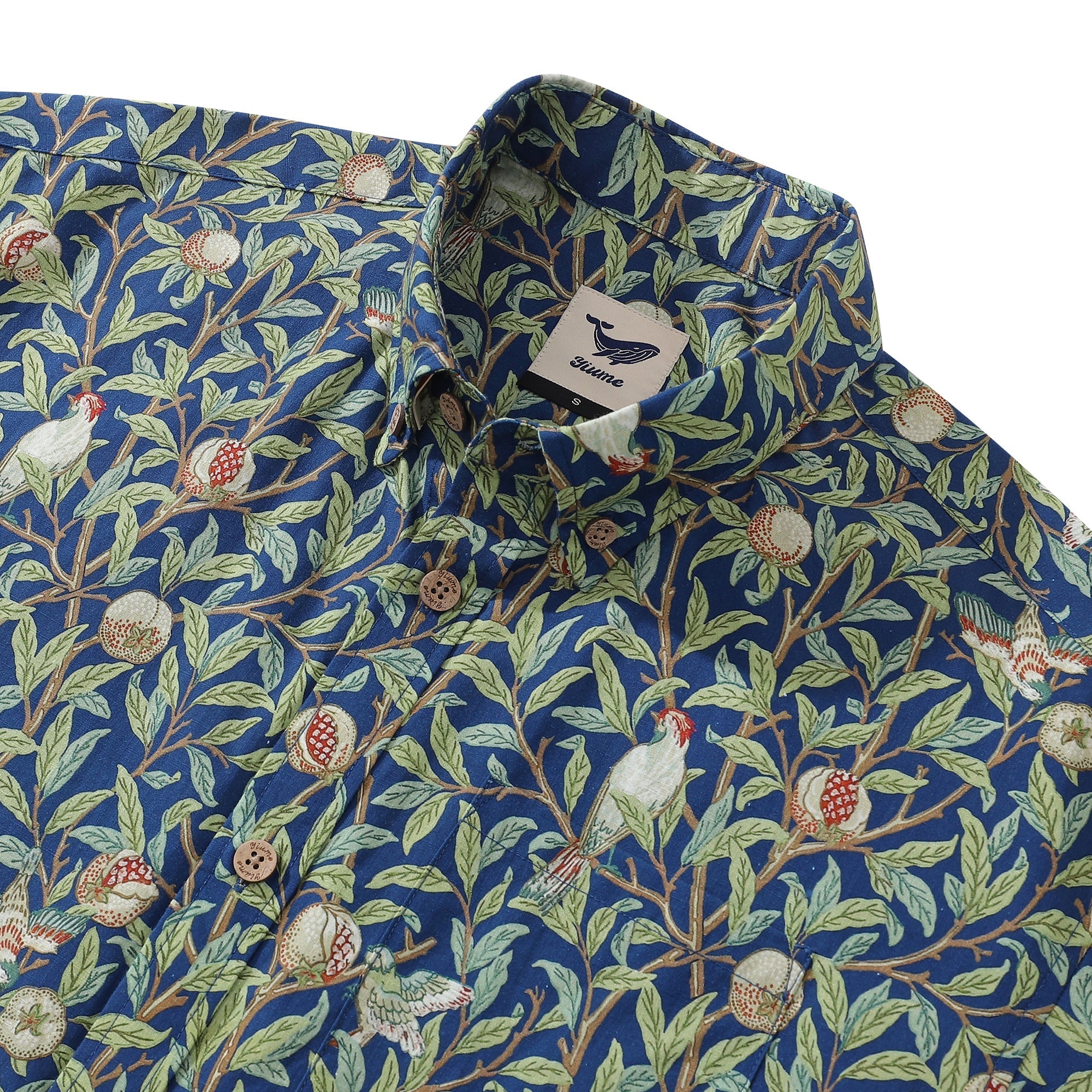 Men's Morris Hawaiian Shirt 1960s Retro Shirt Cotton Button-down Short Sleeve Aloha Shirt Birds And Pomegranates