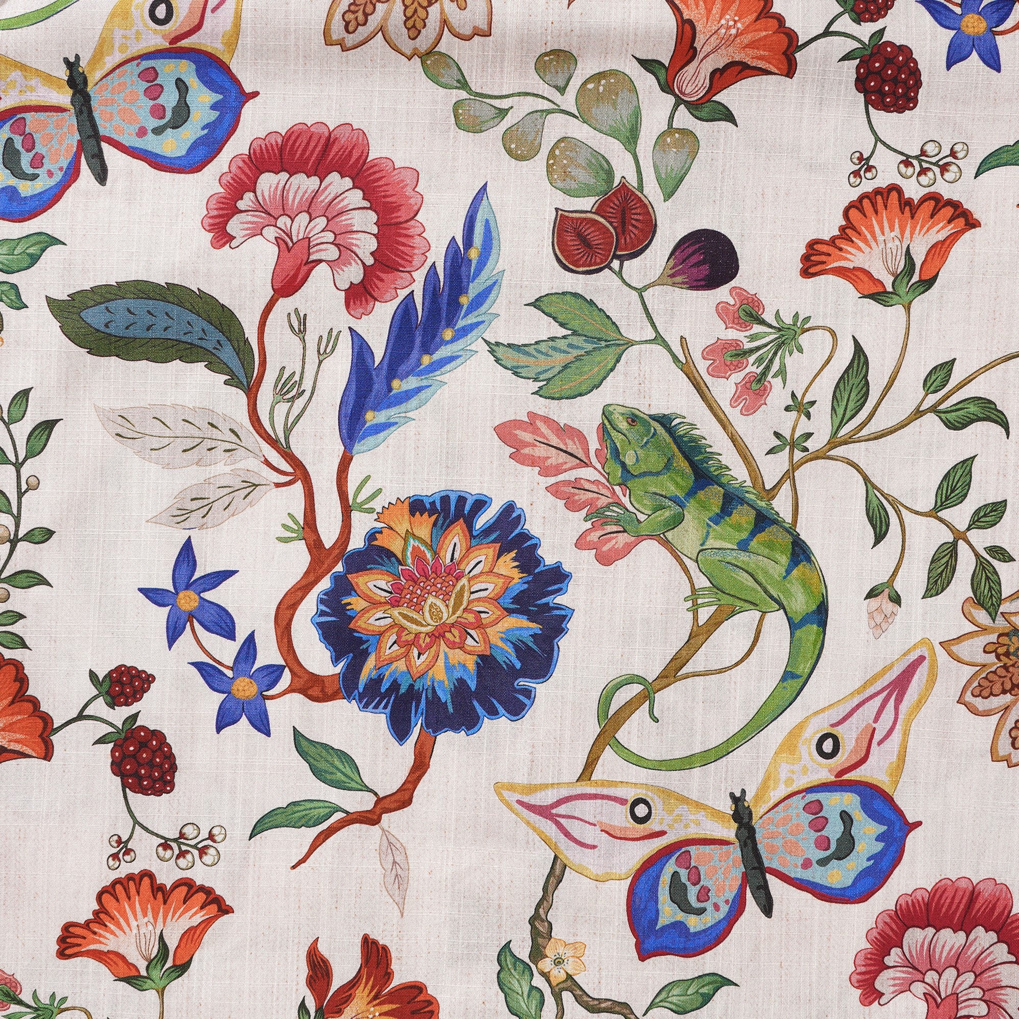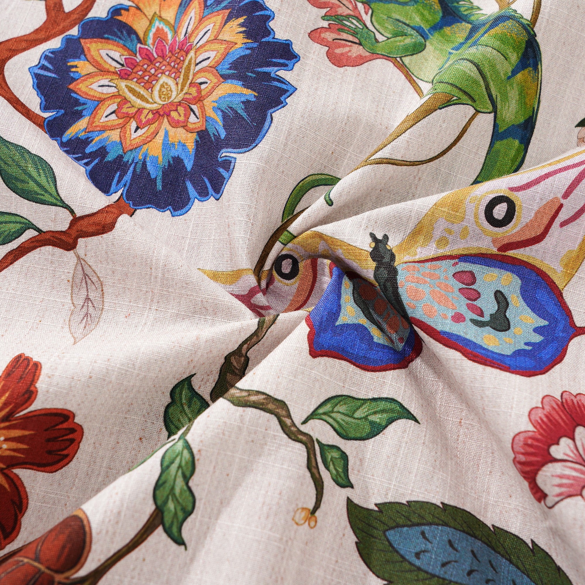 Transport yourself to a bygone era with this vintage floral print, artfully combining diverse elements of nature. The flowers display a myriad of poses, with large blooms exuding vibrant allure and smaller blooms showcasing intricate charm. Interwoven colors create a harmonious blend, while the varied leaf shapes add depth and texture that truly captivate the eye. A green anole lizard perches delicately on a branch, seemingly awaiting the ripening of a fig; a colorful moth unfurls its patterned wings, gracefully flitting among the floral branches. A grasshopper rests upon a flower stem, hinting at the transient nature of blooming beauty. The fusion of vintage aesthetics and natural beauty is seamless, with a harmonious color palette enhancing the overall allure. Soft, delicate florals meet the unique appearance of the green anole lizard, resulting in a striking blend of natural vibrancy and vintage charm.