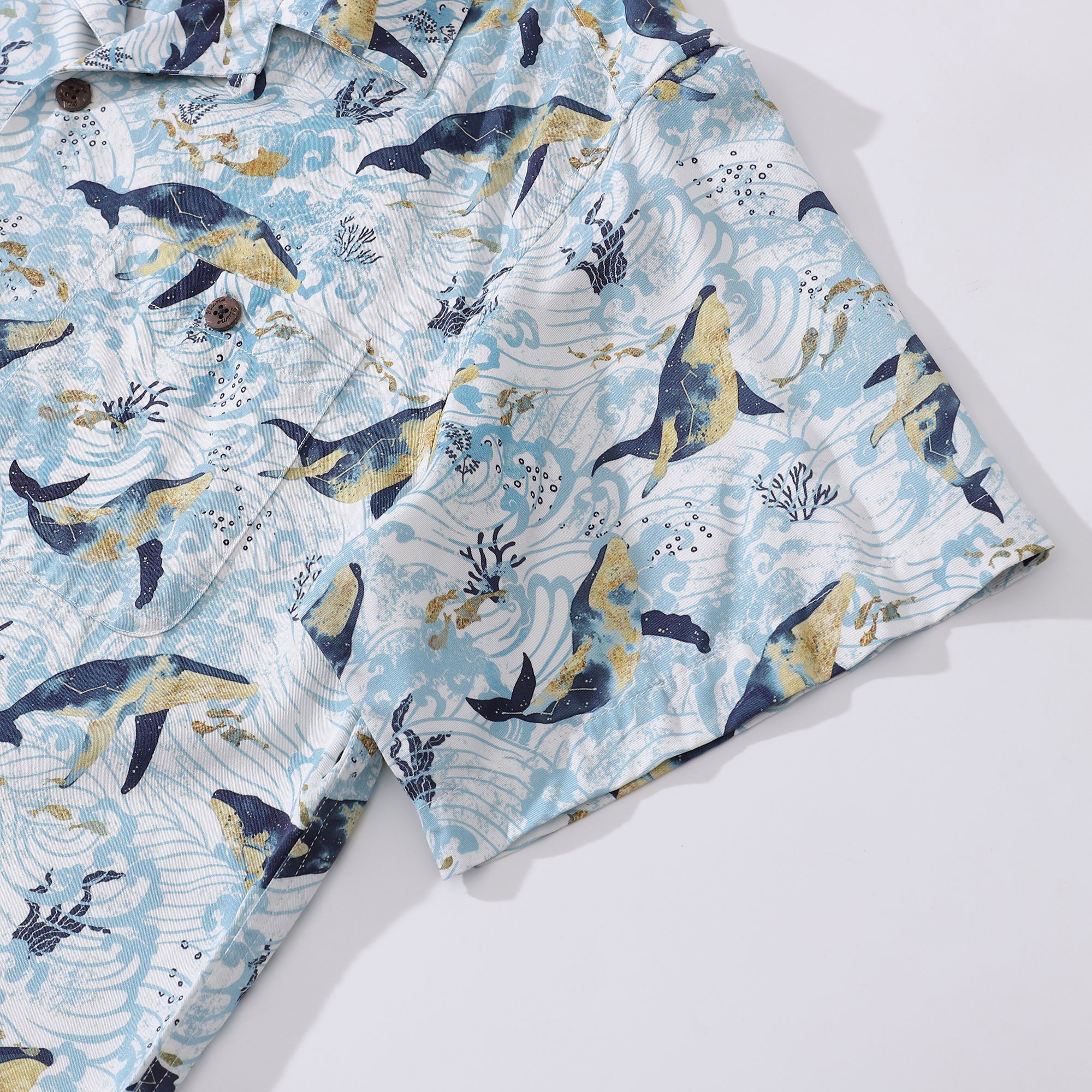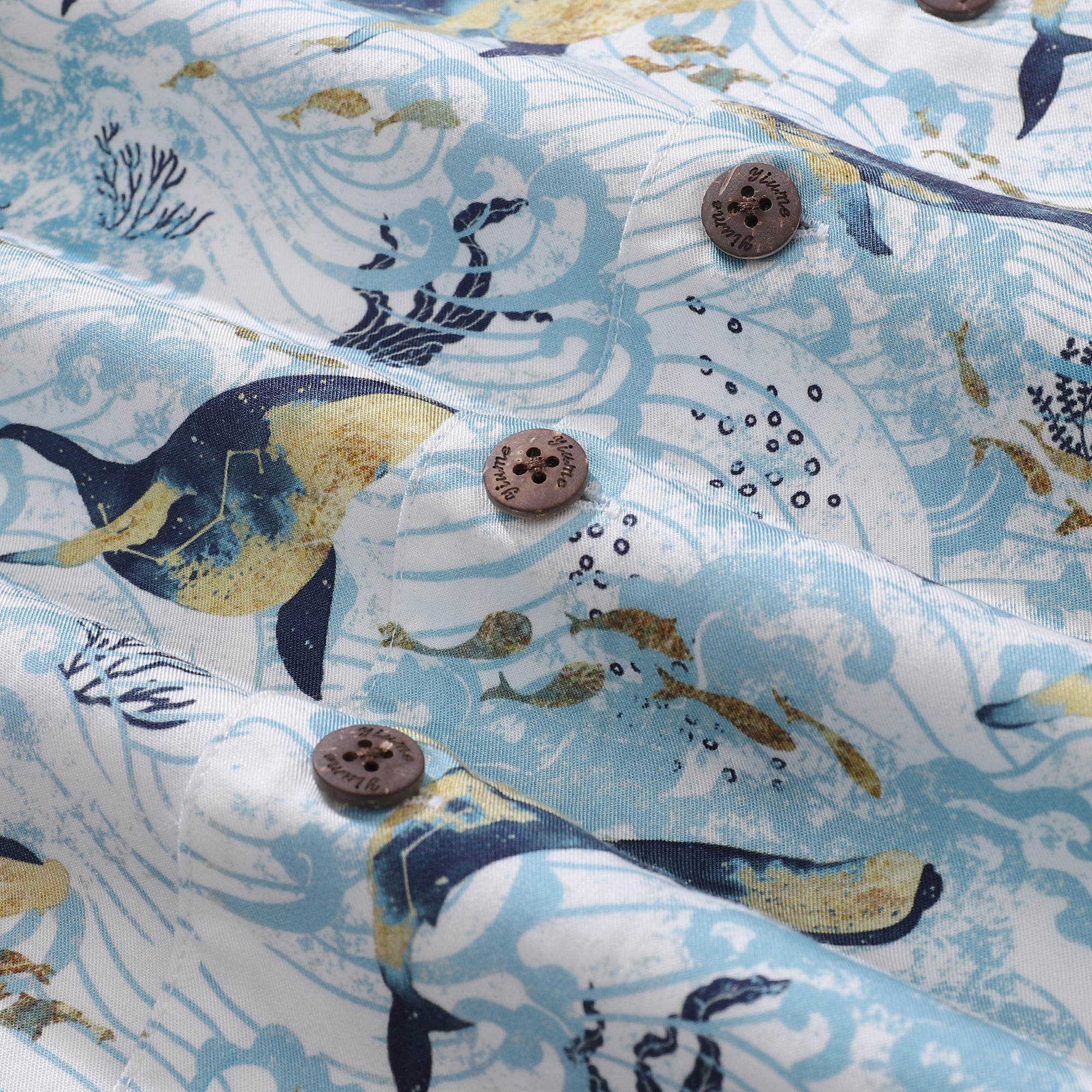 Tencel Hawaiian Shirt For Men Pisces Oceanic Camp Collar Shirt