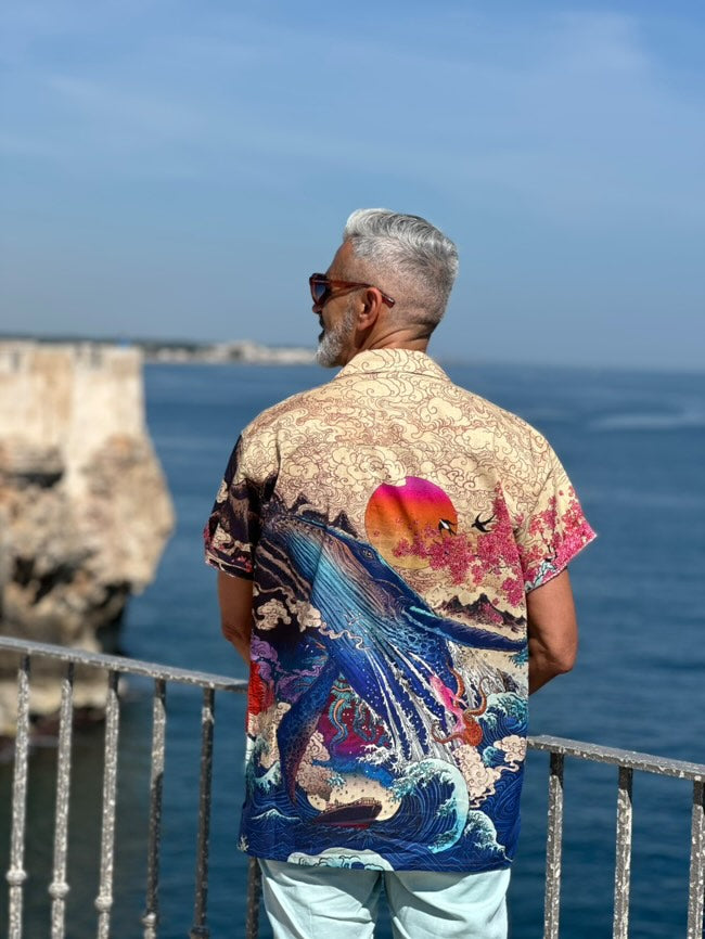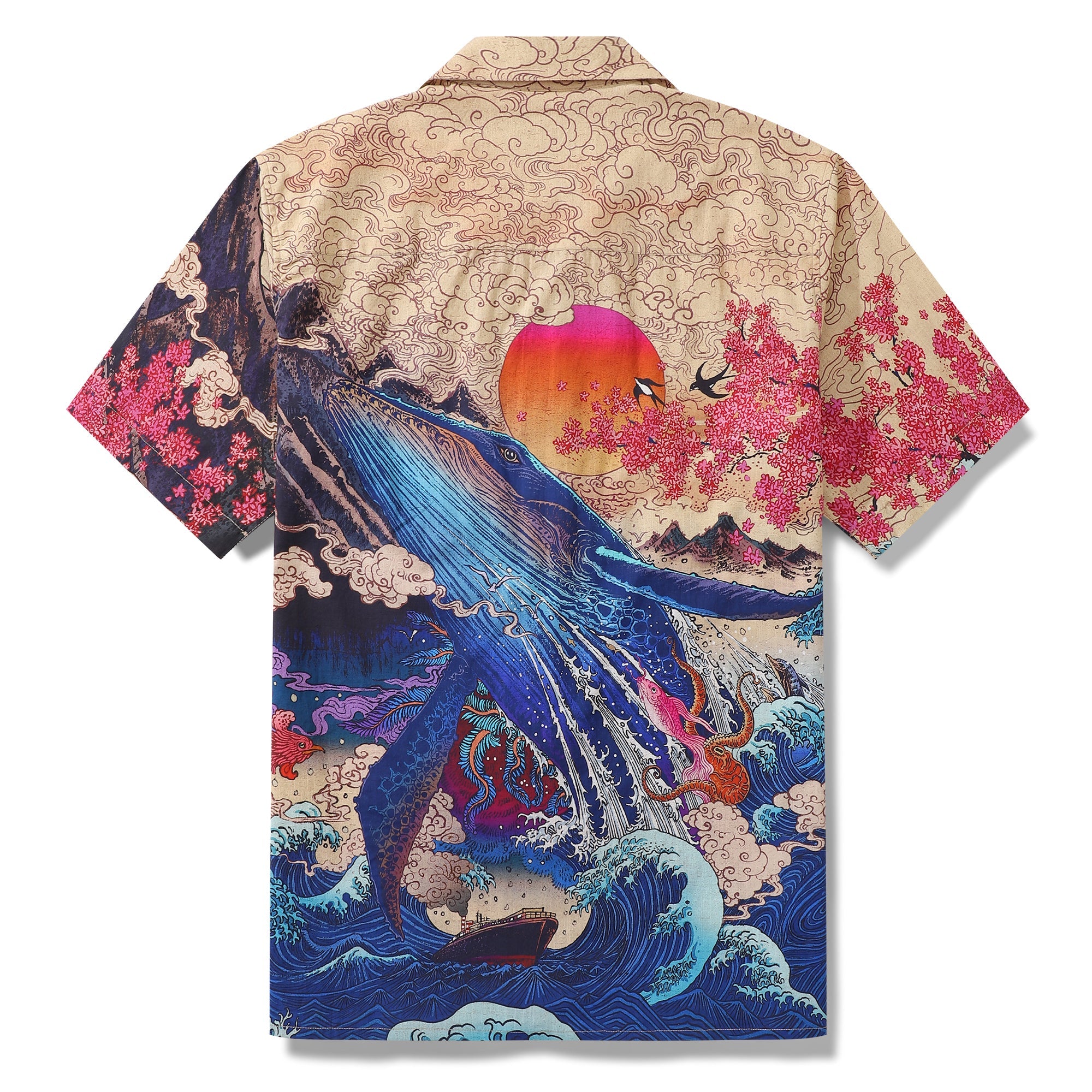 Yiume Ukiyo-e Hawaiian Shirt 100% Cotton Shirt For Men Camp Collar Aloha Shirt Ukiyo-e No6 By Rlon