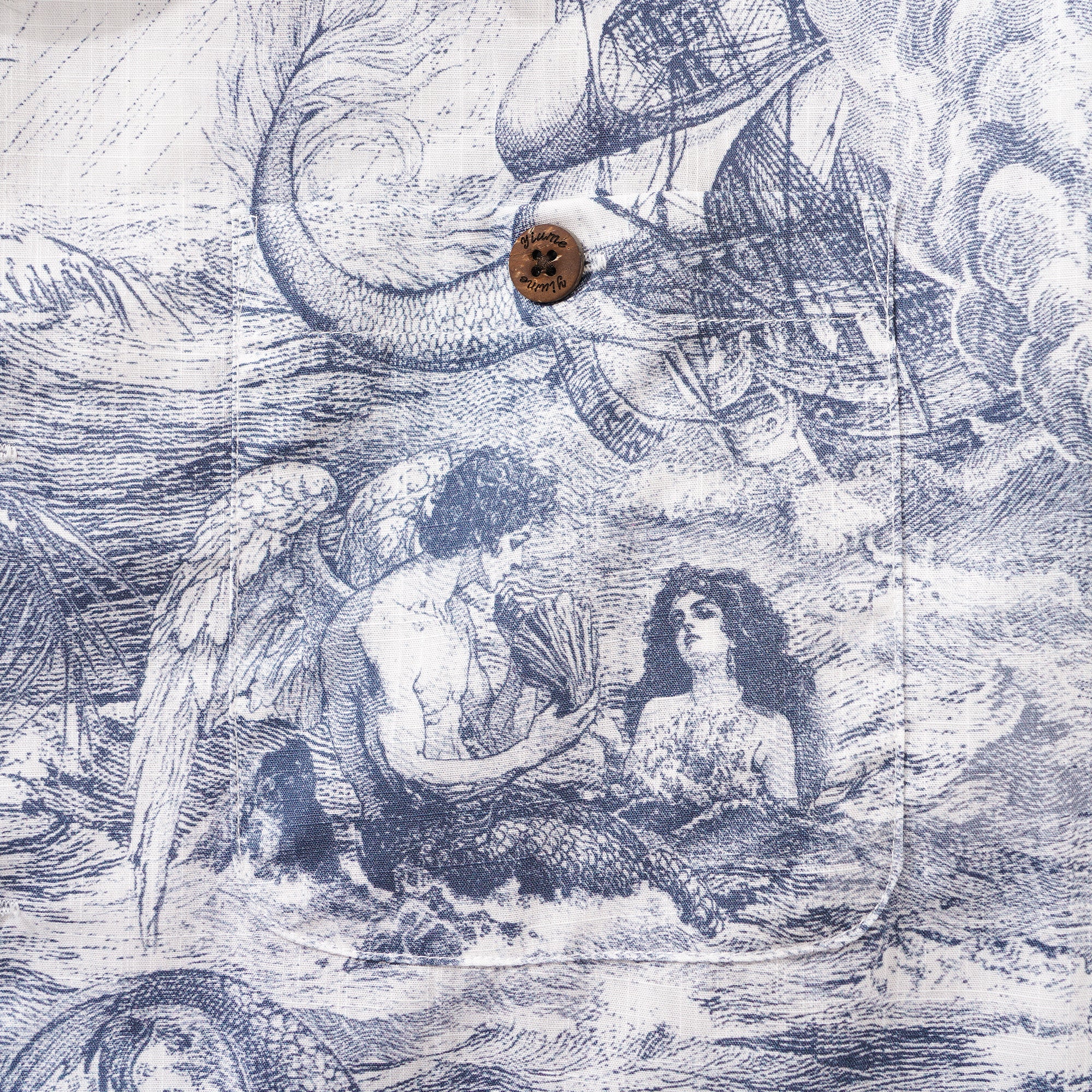 Men's Hawaiian Shirt Short Sleeve Camp Collar 100% Cotton Blue Aloha Ocean Muse