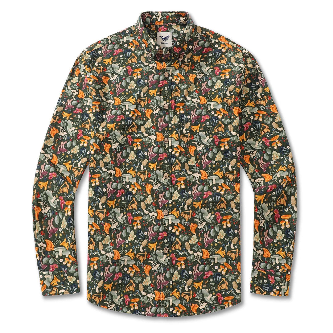 Hawaiian Shirt For Men Long Sleeve Aloha Mushroosh Shirt Forest Edibles By House Of Haricot
