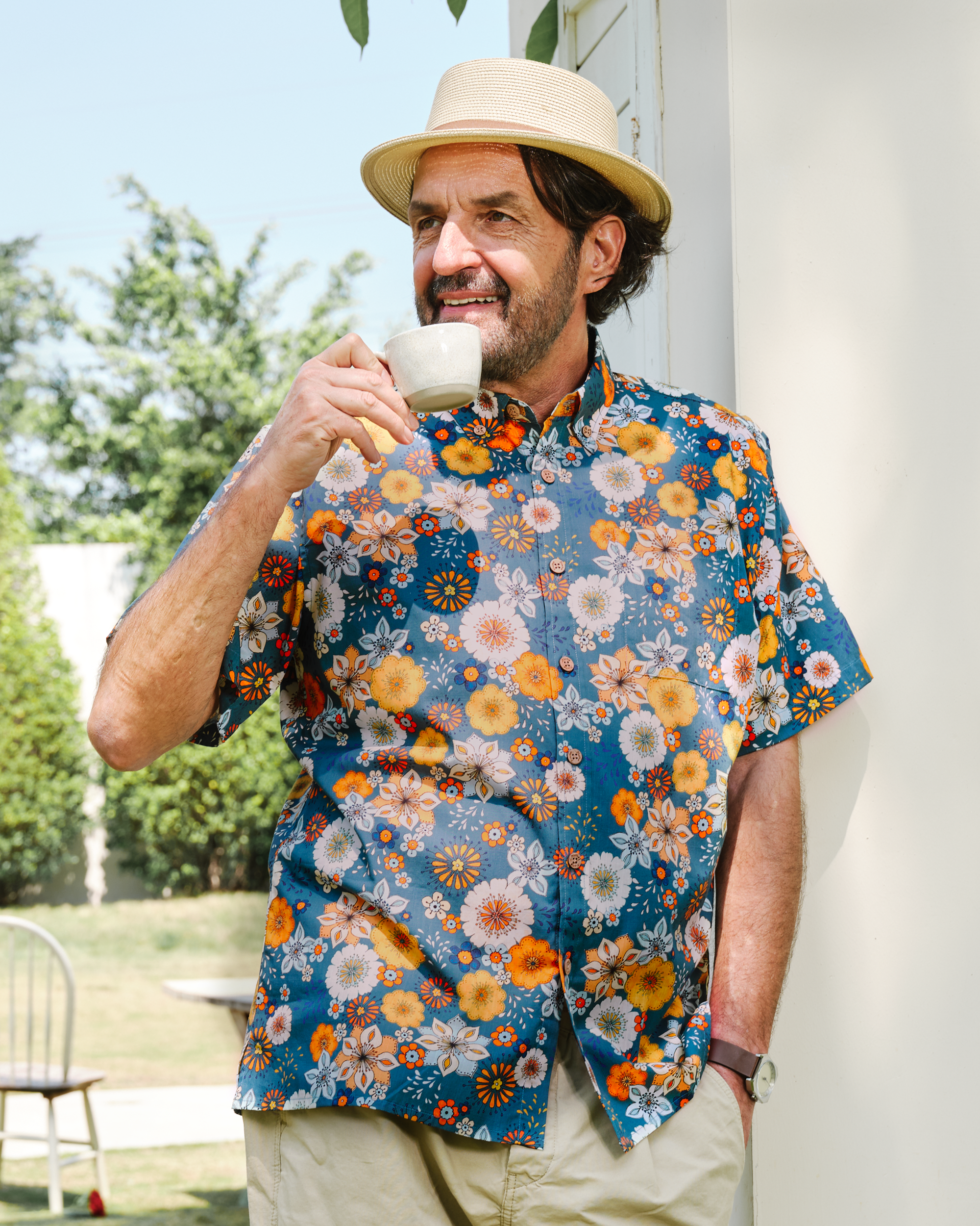 Make a splash in this 1960s inspired floral print Hawaiian shirt. Featuring a kaleidoscope of vibrant blooms, this lively pattern is a throwback to the bold fabrics of the groovy era. The colorful floral design pops against the breezy cotton, perfect for sunny days and tropical getaways. Tailored for a relaxed retro vibe, this floral button up brings the easygoing style of the 60s into the modern day.
