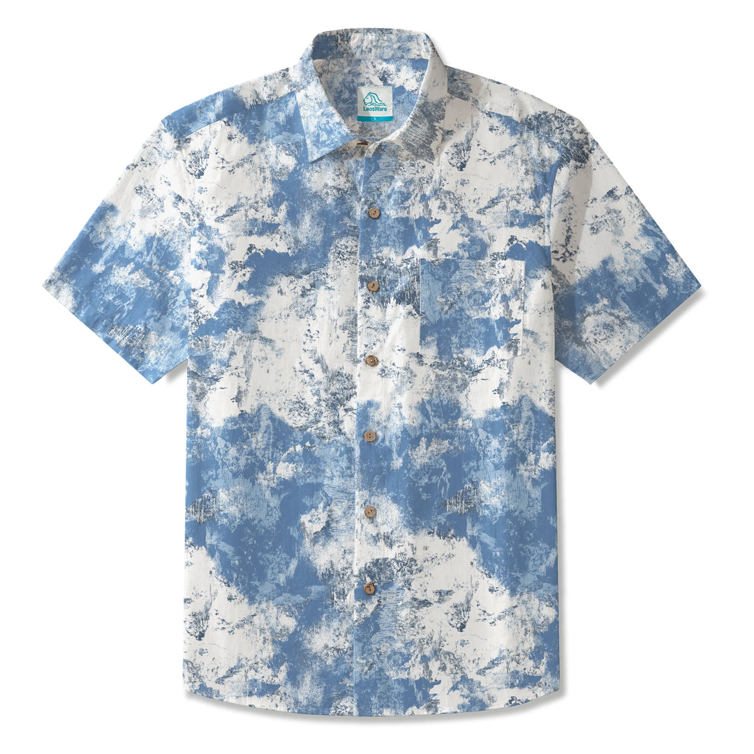 LeosWare® Men's Hawaiian Shirt Short Sleeve Button-up 100% Cotton Blue Aloha Blue And White Abstract Dream