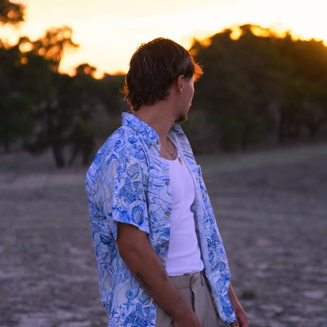 Men's Hawaiian Shirt Short Sleeve Button-down 100% Cotton Blue Aloha Dreamy Ocean