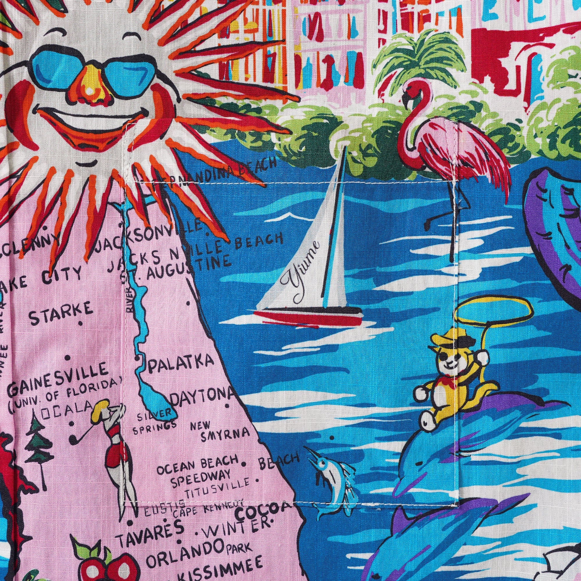 Experience Florida's essence in this vibrant shirt. The sun dons shades, beaming upon a canvas of the Florida outline. Oranges infuse fruity fragrance, while sailboats, palm trees, seashells, and starfish adorn the design. A nostalgic puzzle of coastal scenes and Florida's taste. Transform your day into beachside bliss. Relive memories or infuse coastal relaxation into daily life. Carry the freedom and warmth of the coast with you in this treasured, unique shirt.