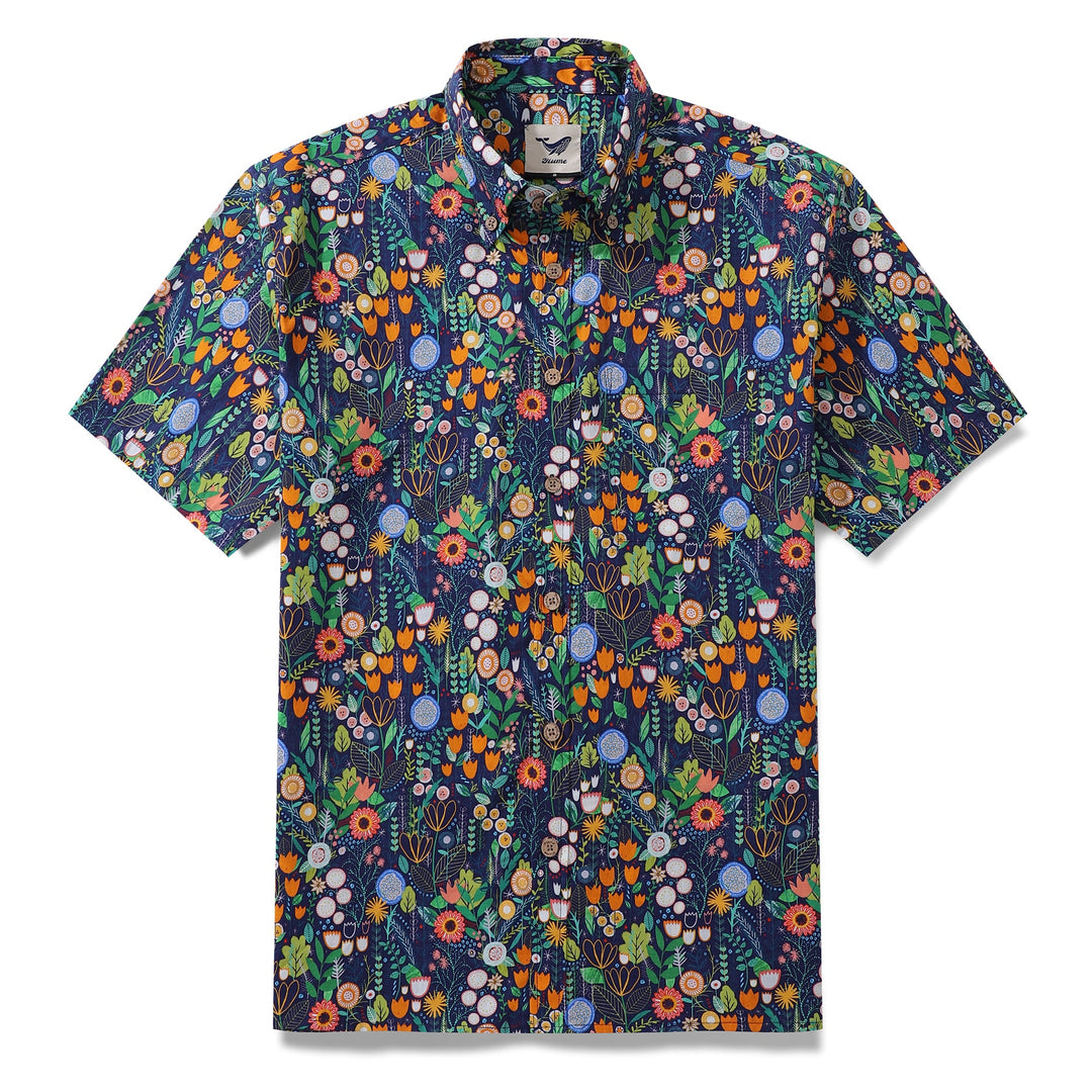 Floral Hawaiian Shirt For Men Button-down Short Sleeve 100% Cotton Shirt Mary's Garden By Rachel Parker