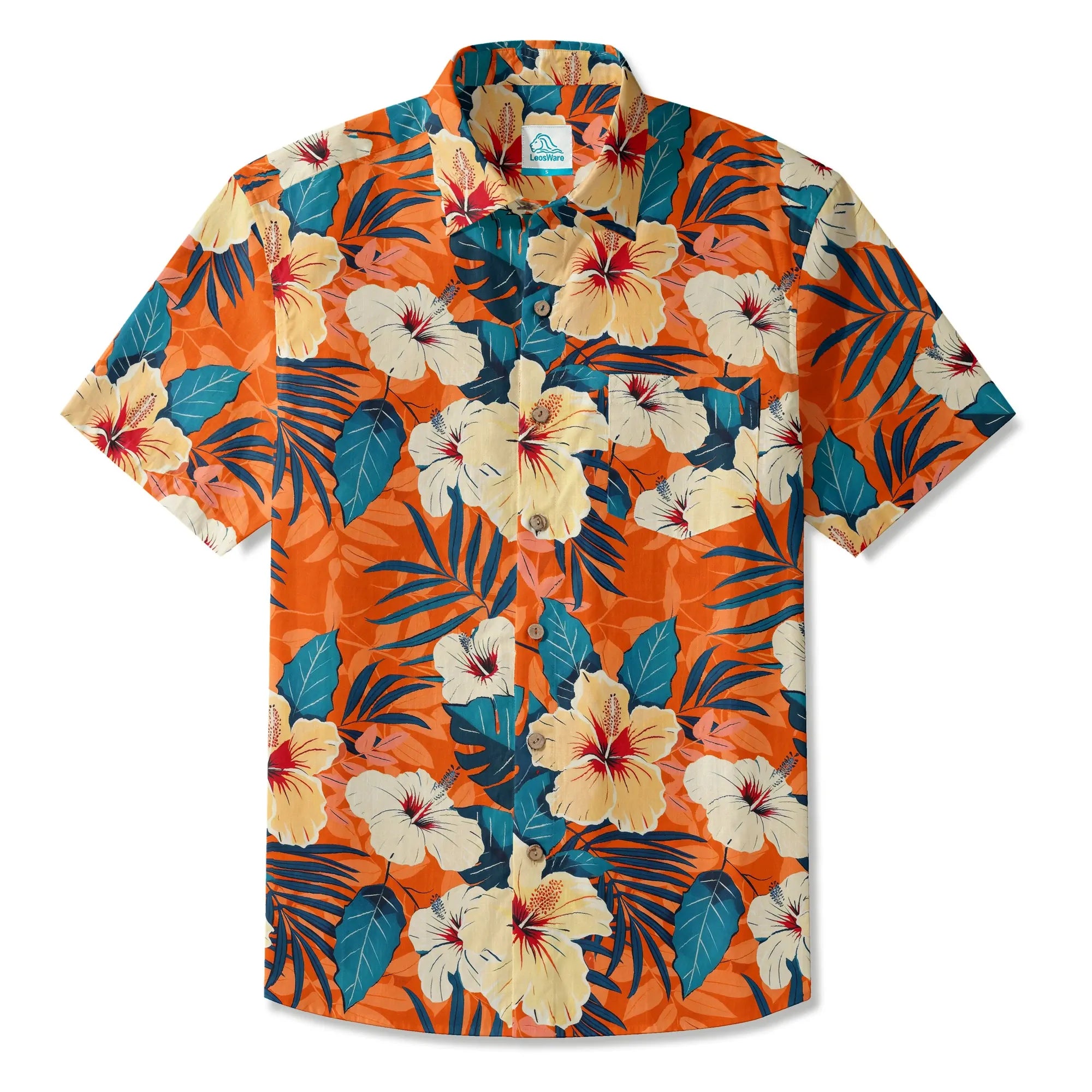 - Botton-up collar, short sleeve, buttons closure, with pocket(s)