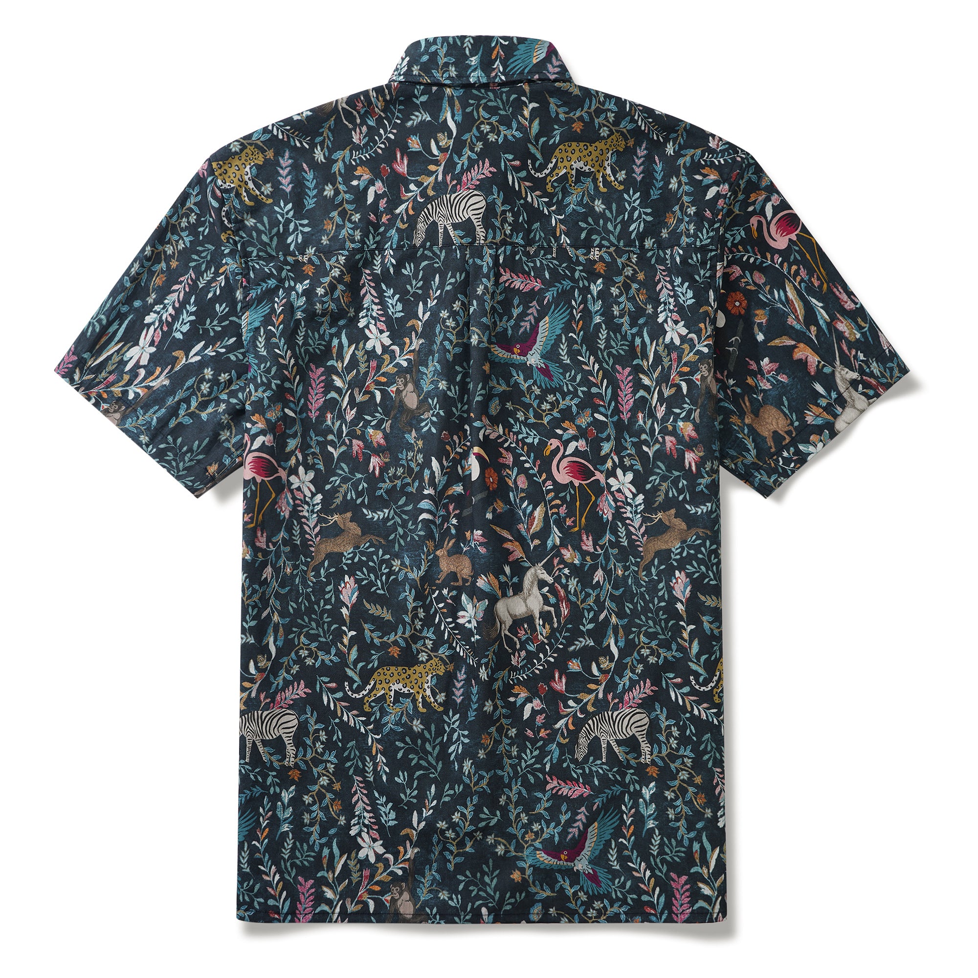 Jungle Paradise Men's Hawaiian Shirt 100% Cotton Men's Short Sleeve Button-down Shirt Green Aloha Hawaiian