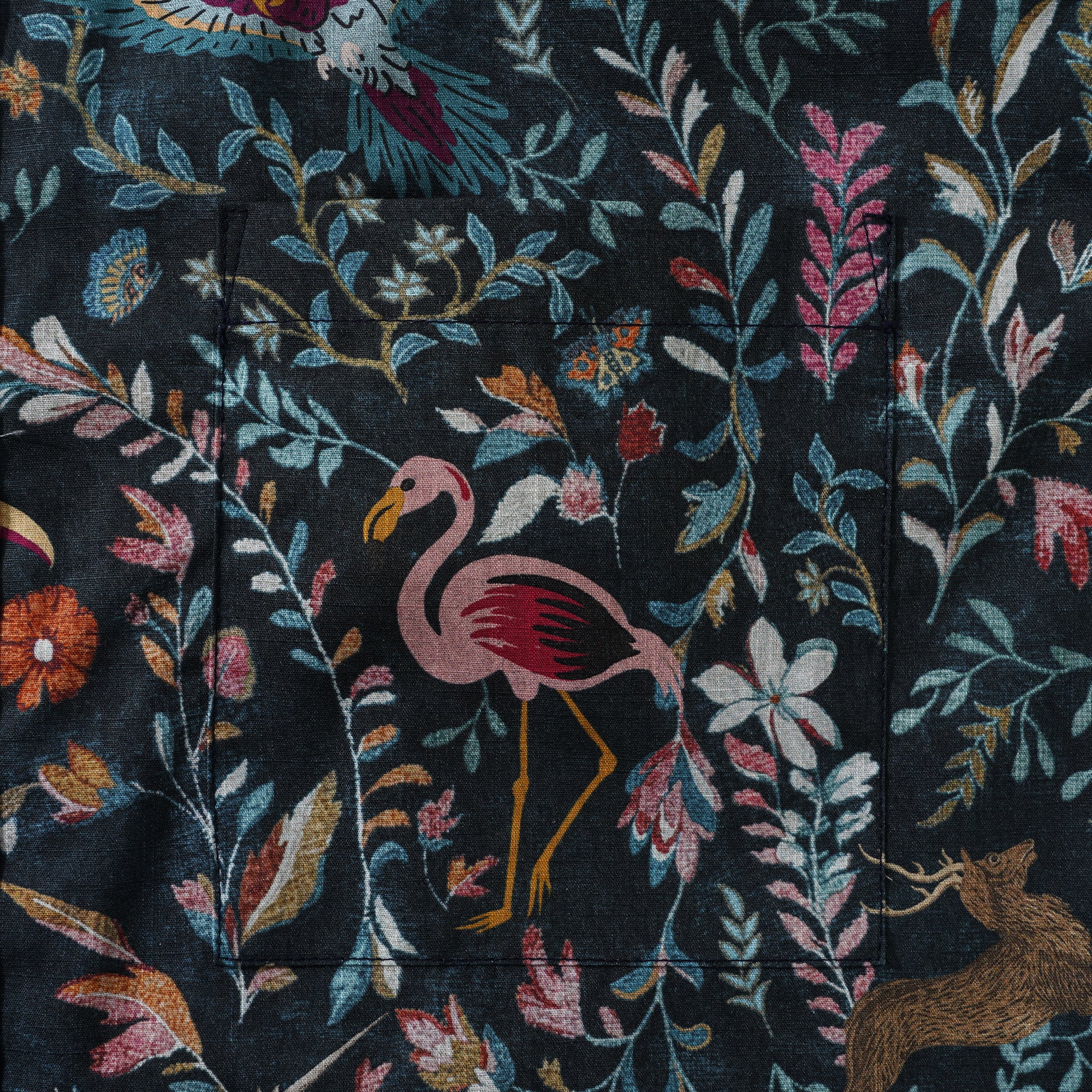 Experience the lush beauty of the jungle with our deep green shirt featuring a vibrant and mysterious design. This shirt brings to life various jungle animals, from the playful monkeys to the elegant flamingos and unique zebras, creating a symphony of nature. Symbolizing a love for and exploration of the natural world, this shirt brings the enchantment of the jungle into your everyday life, allowing you to feel the wonder and vitality of nature in the comfort of your own home.