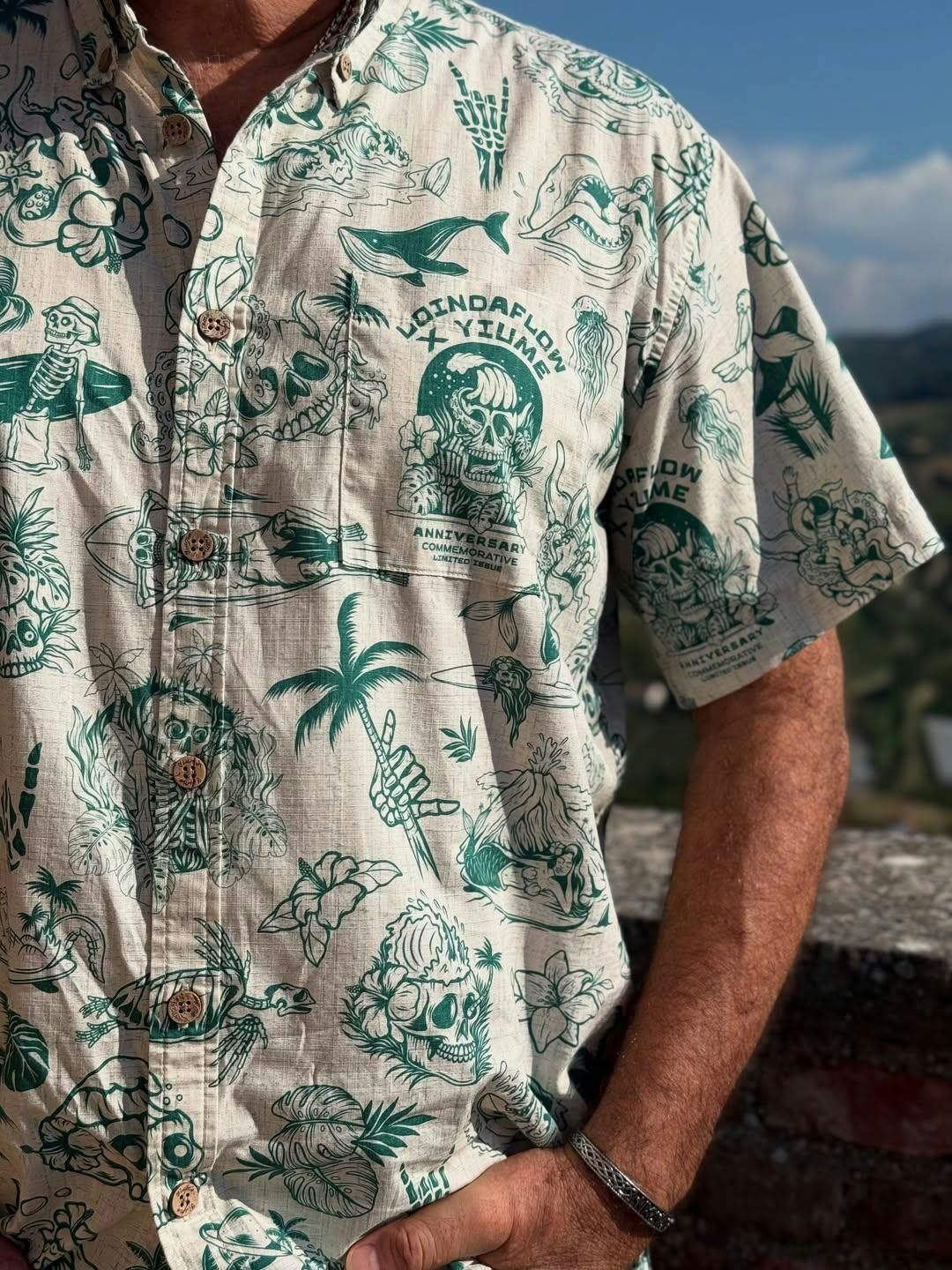 100% Cotton Hawaiian Shirt For Men Landscape Painting Camp Collar Shirt