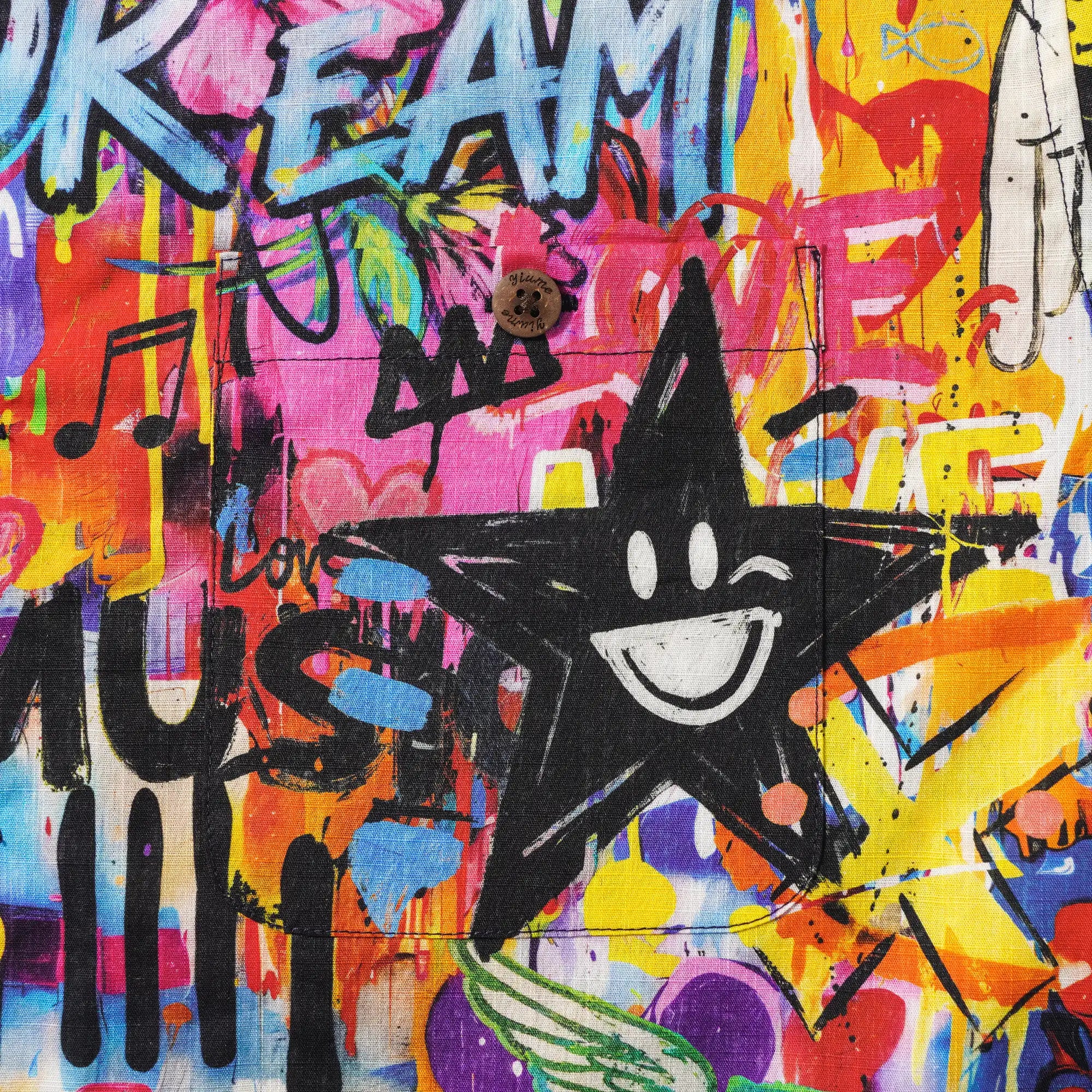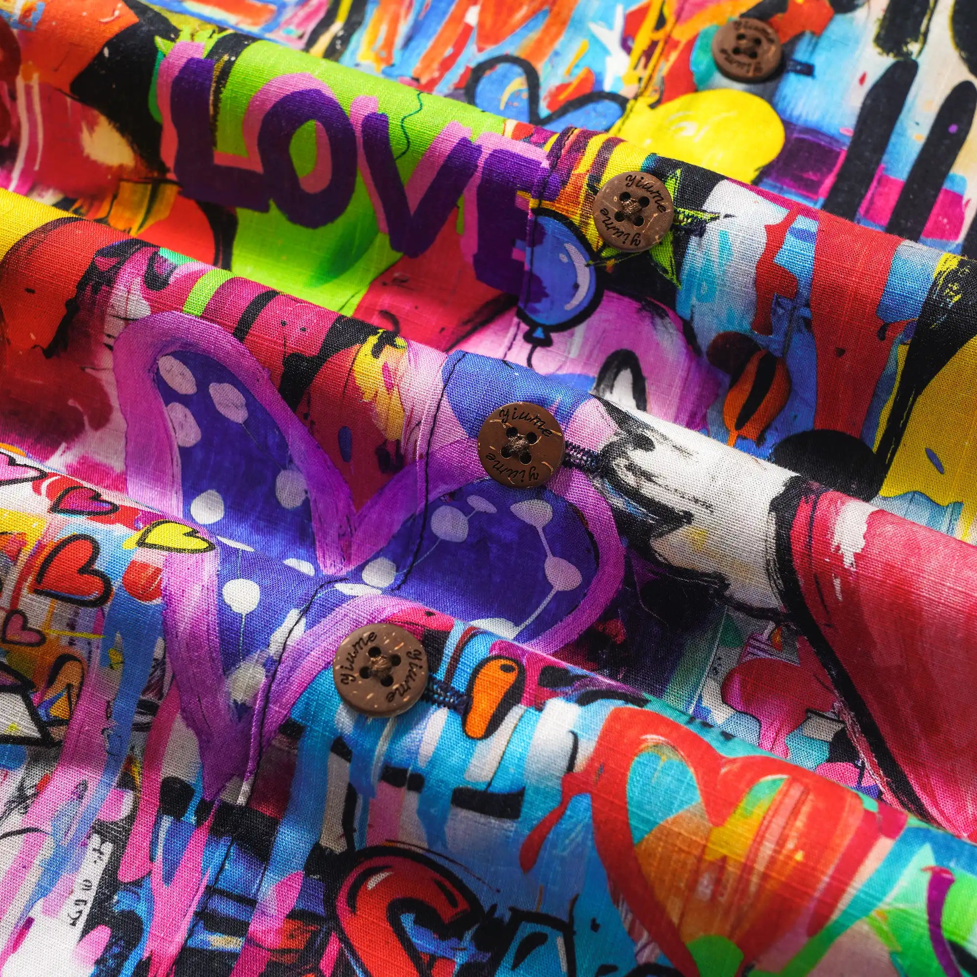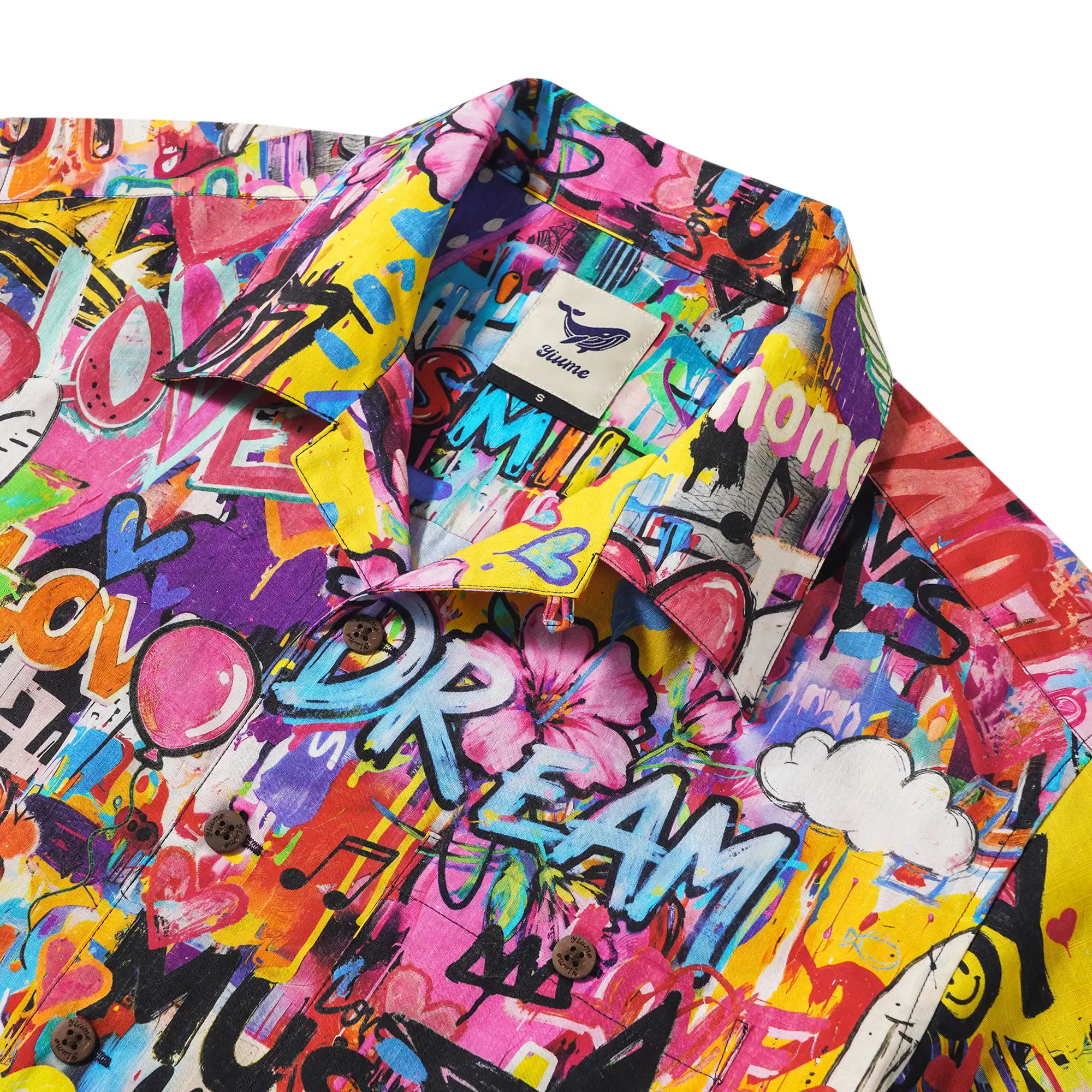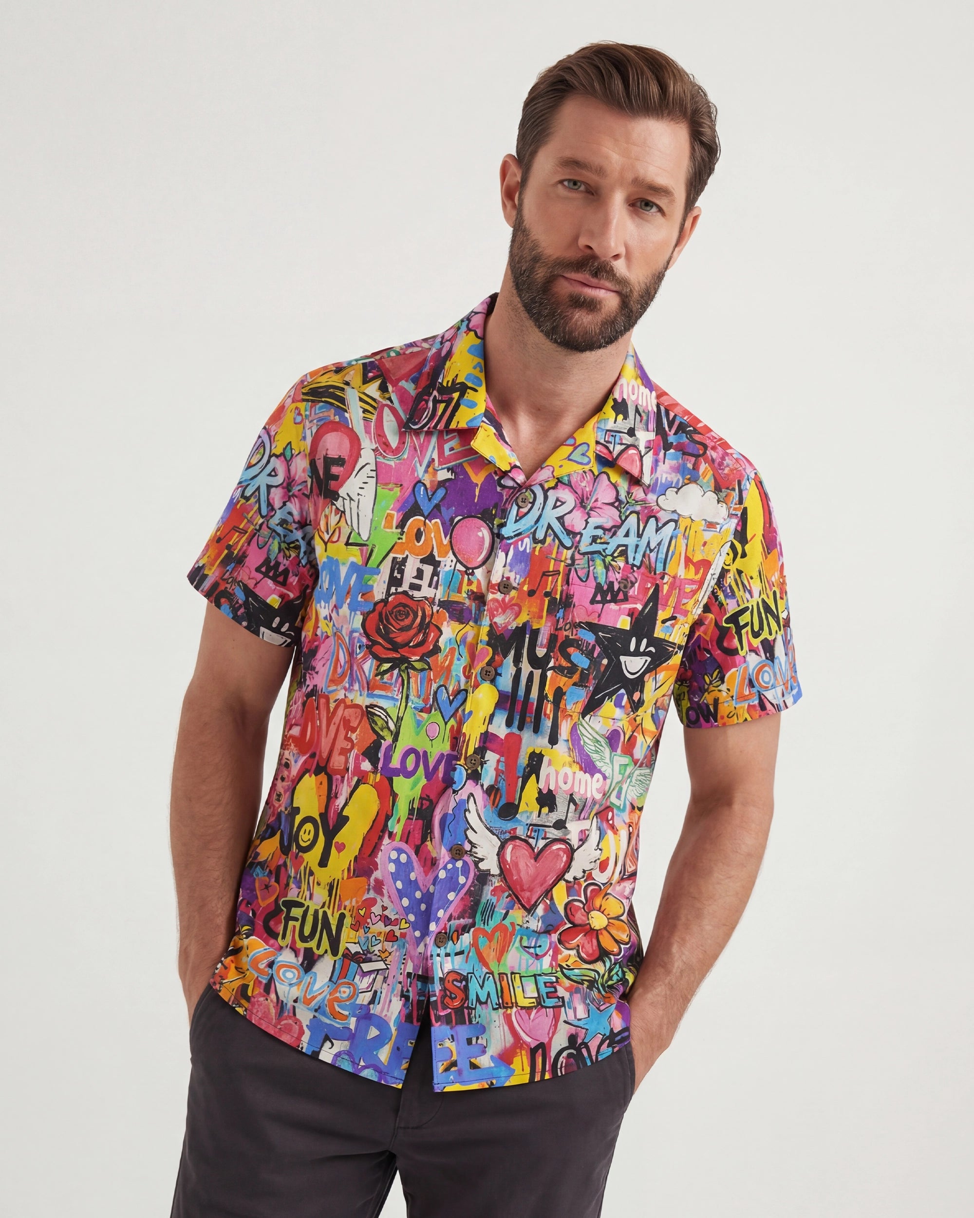 Men's Hawaiian Shirt Short Sleeve Camp Collar 100% Cotton Aloha Artistic Love Graffiti Fun