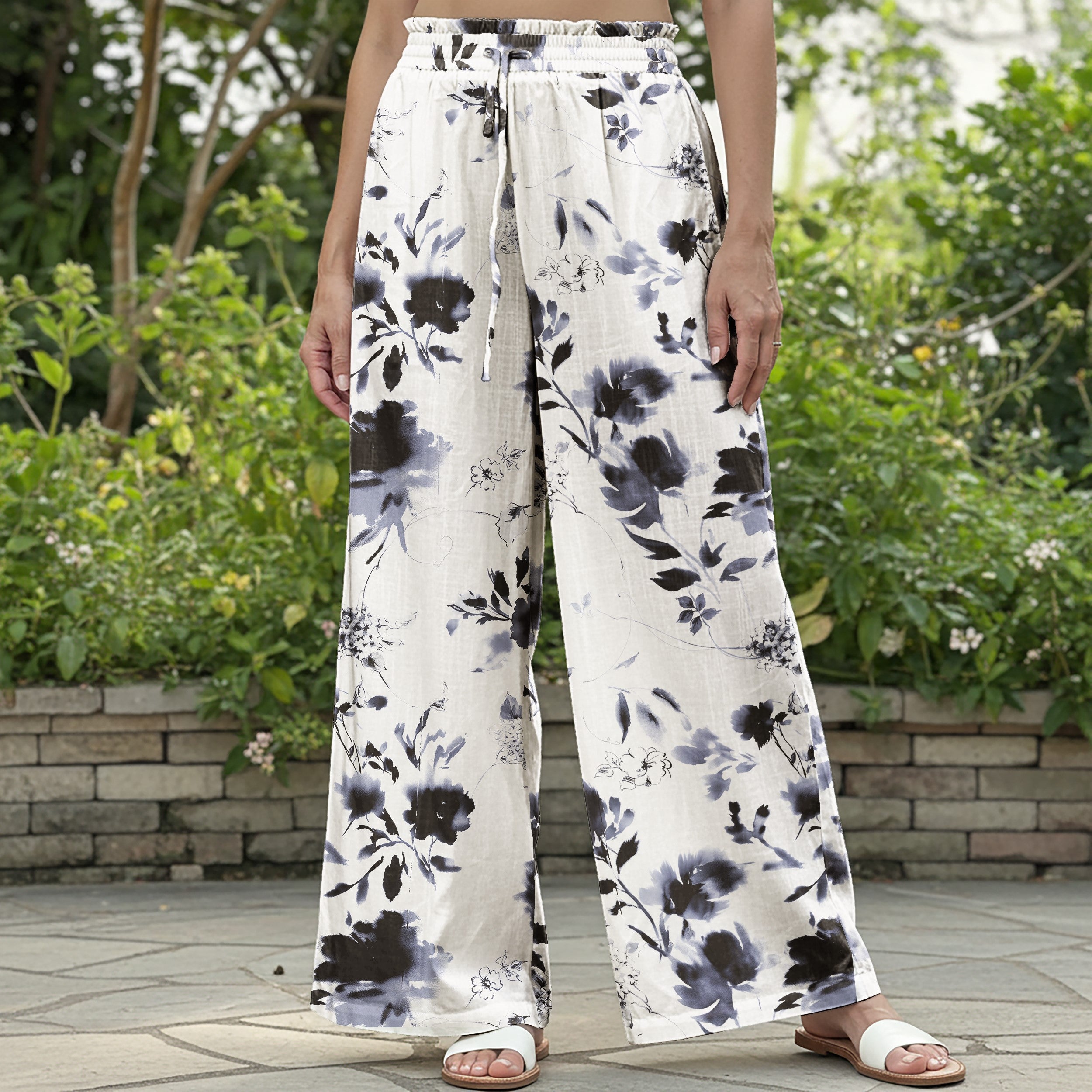 Women Casual Pants Lounge Elastic Waist Drawstring 100% Cotton White Aloha Eastern Ink Charm