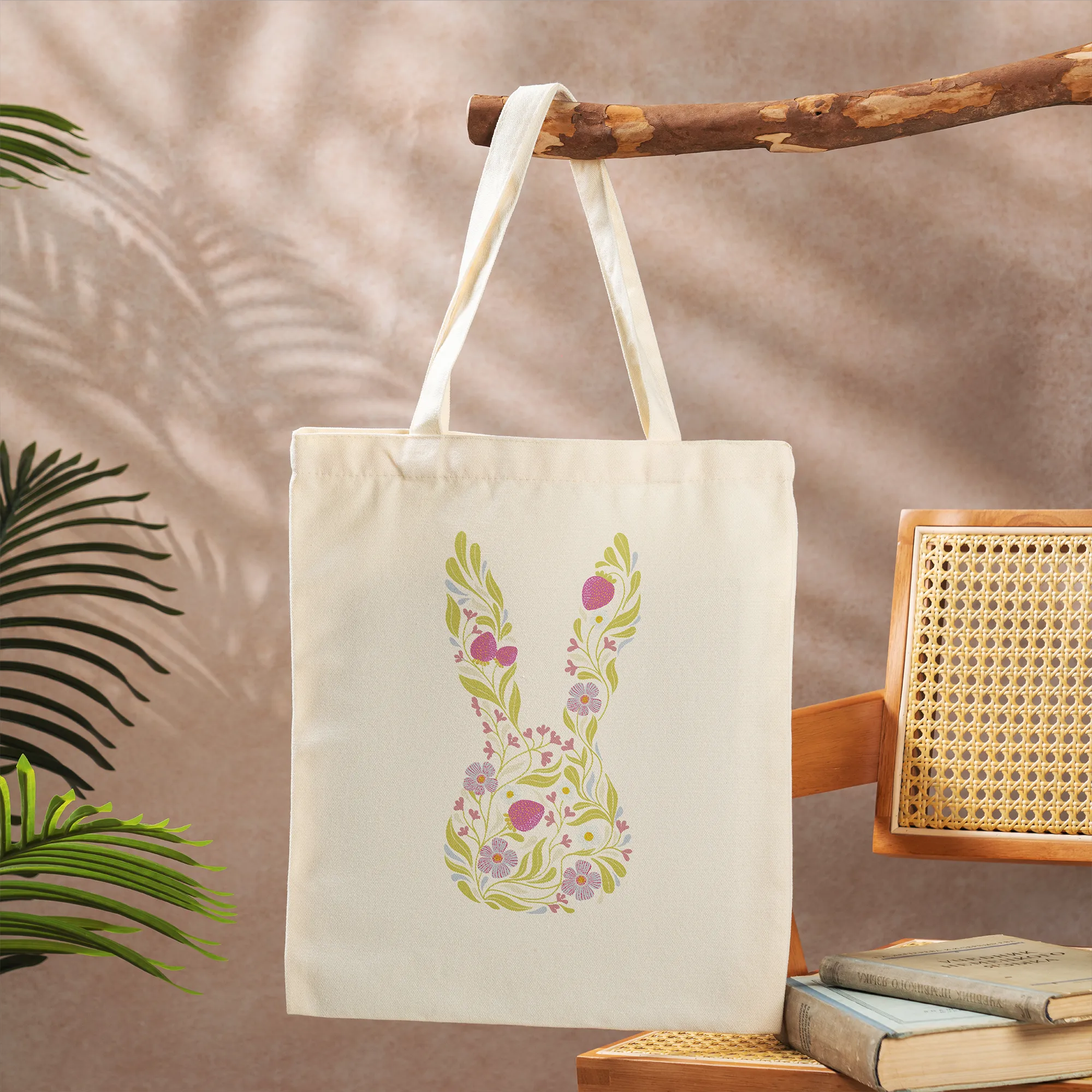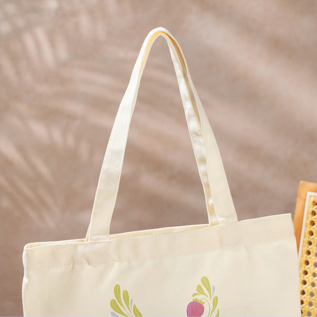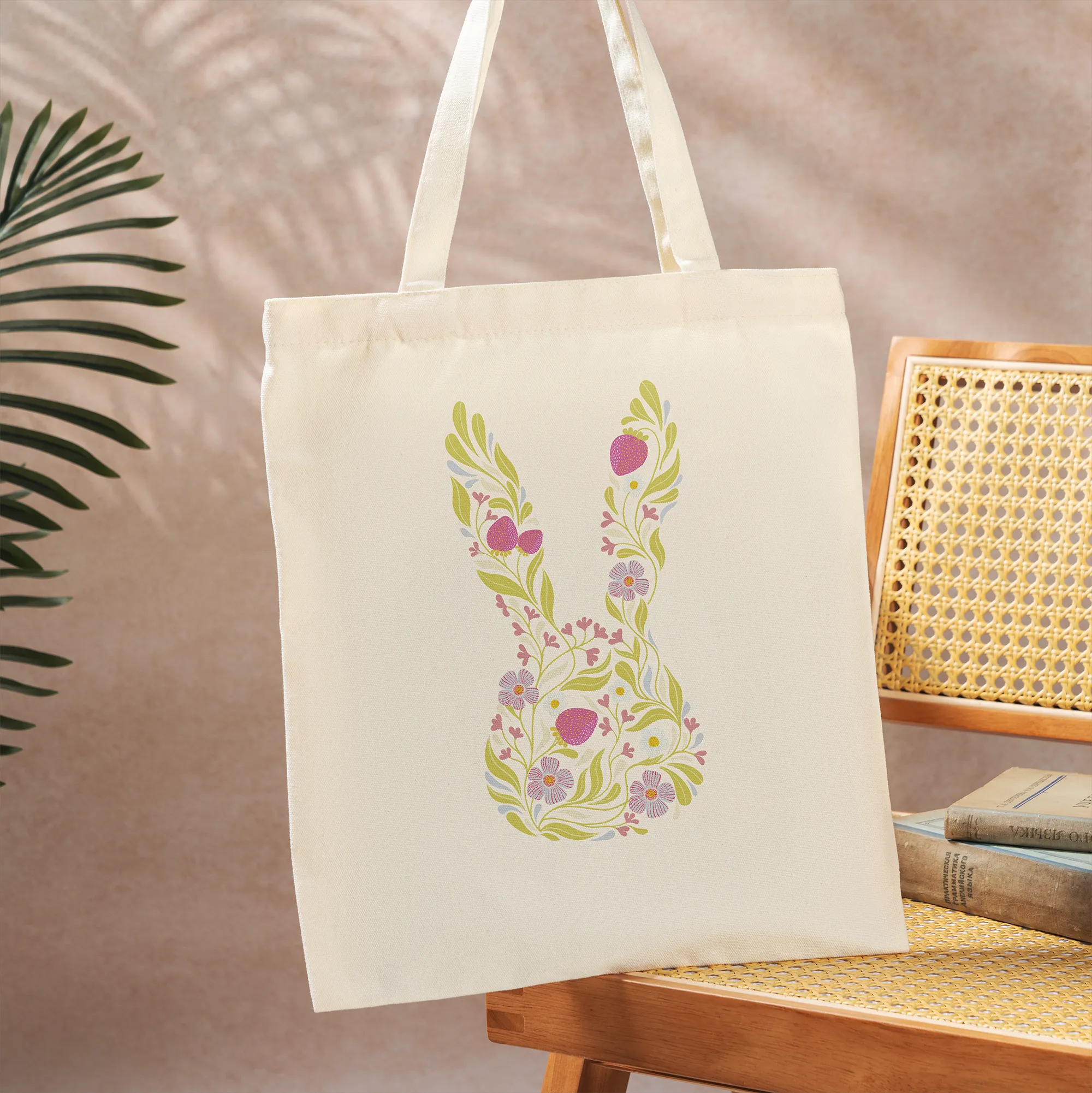 Rabbit Strawberry Tote Bag 100% Polyester Green Aloha Berry Vine Blossom