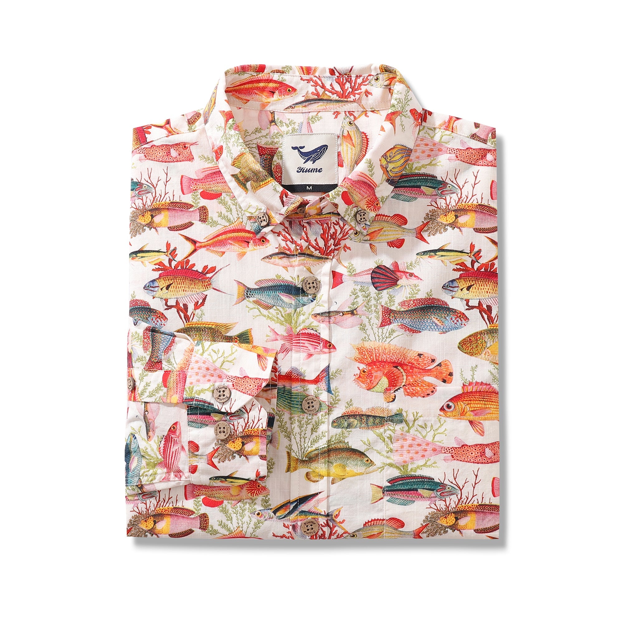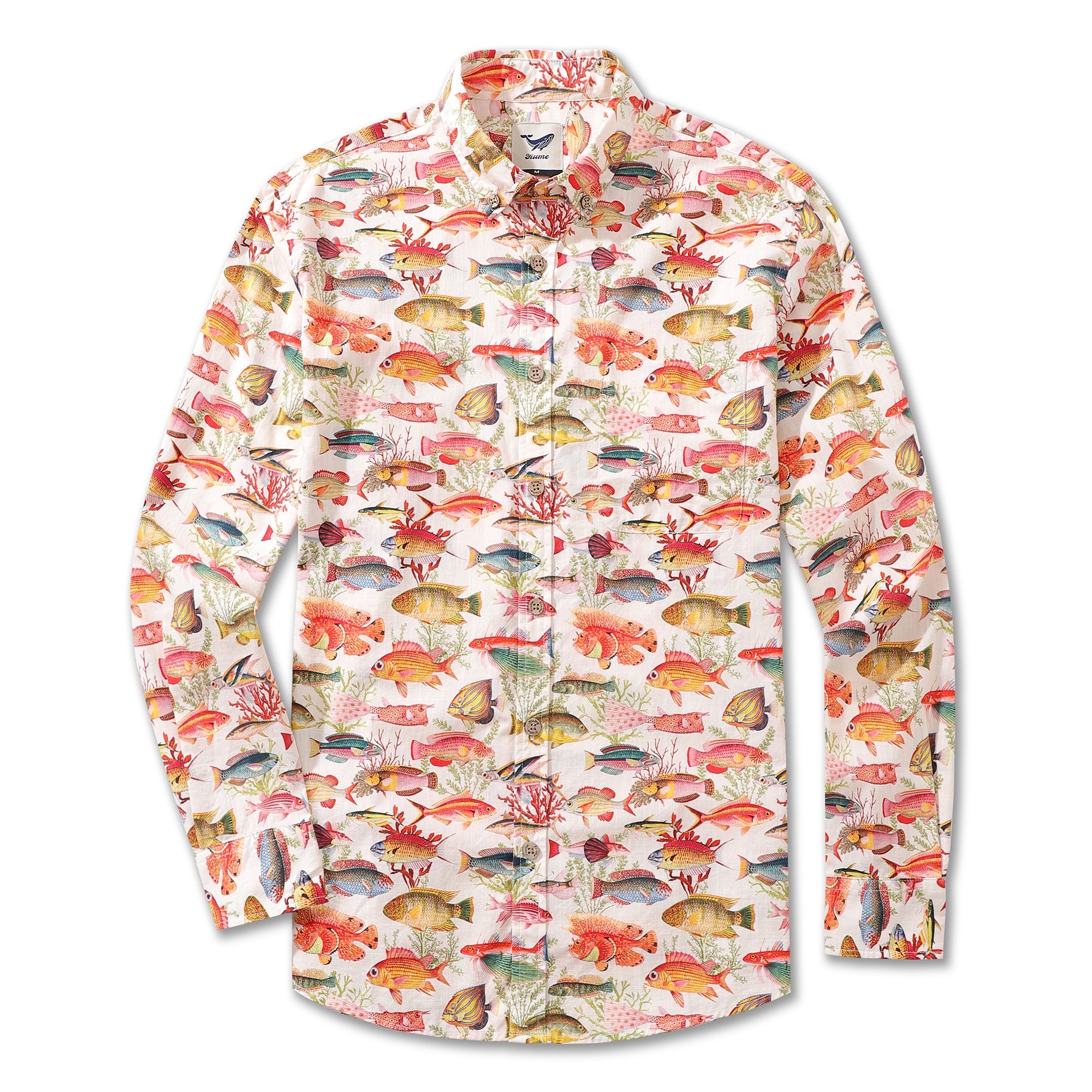 Men's Hawaiian Shirt Sea Ocean Fish Print Cotton Button-down Long Sleeve Aloha Shirt Sea Ocean Fish Long Sleeve Shirt