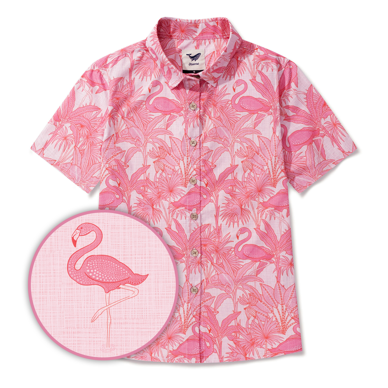 Women's Hawaiian Shirt Short Sleeve Button-up Pink Aloha Flamingos & Chameleons By House of Haricot