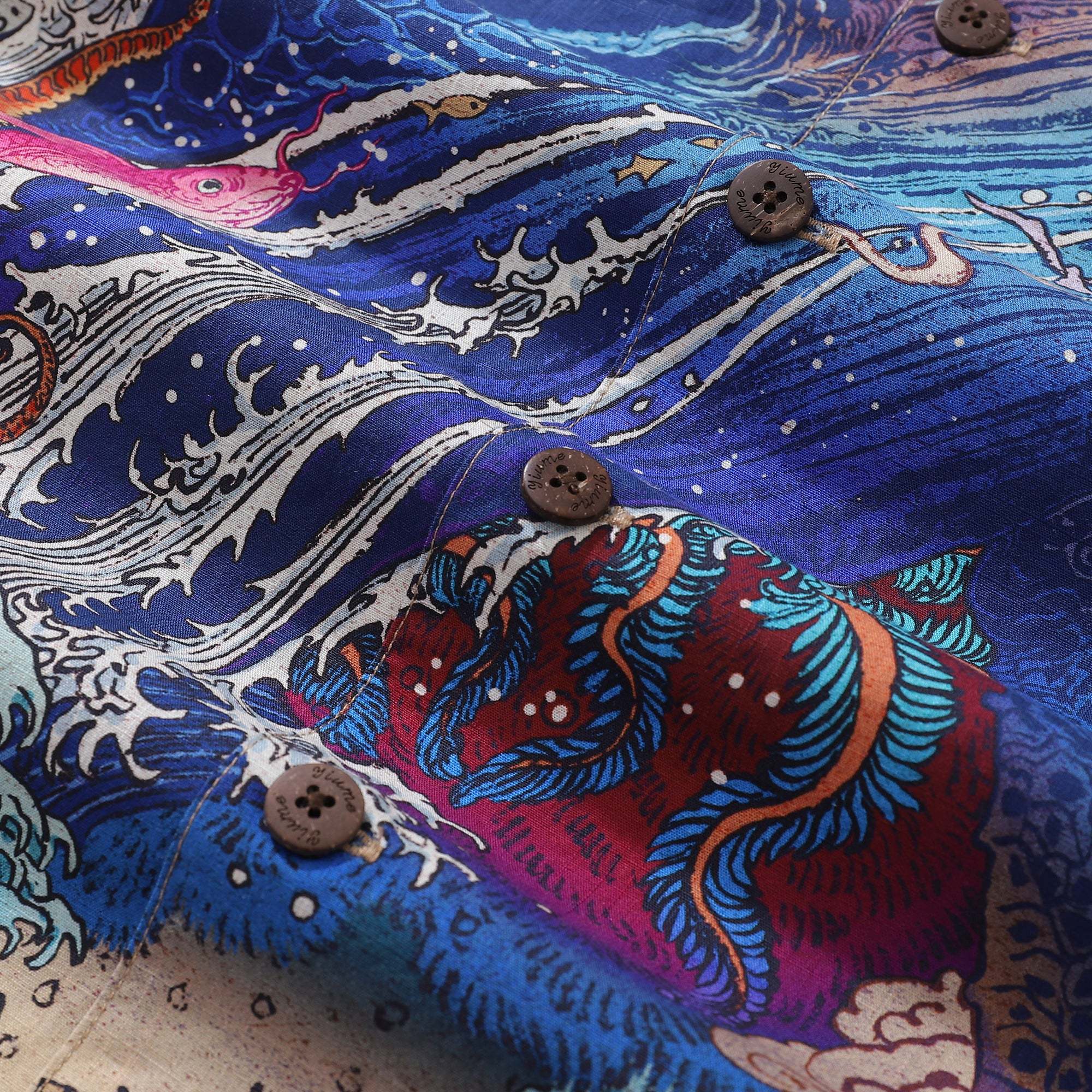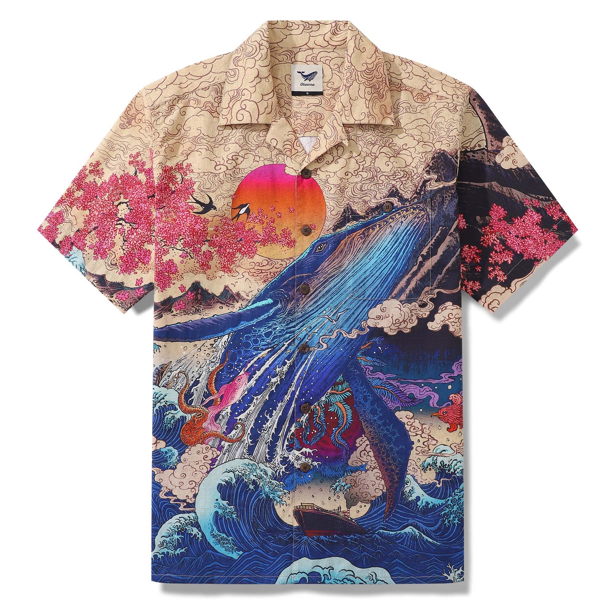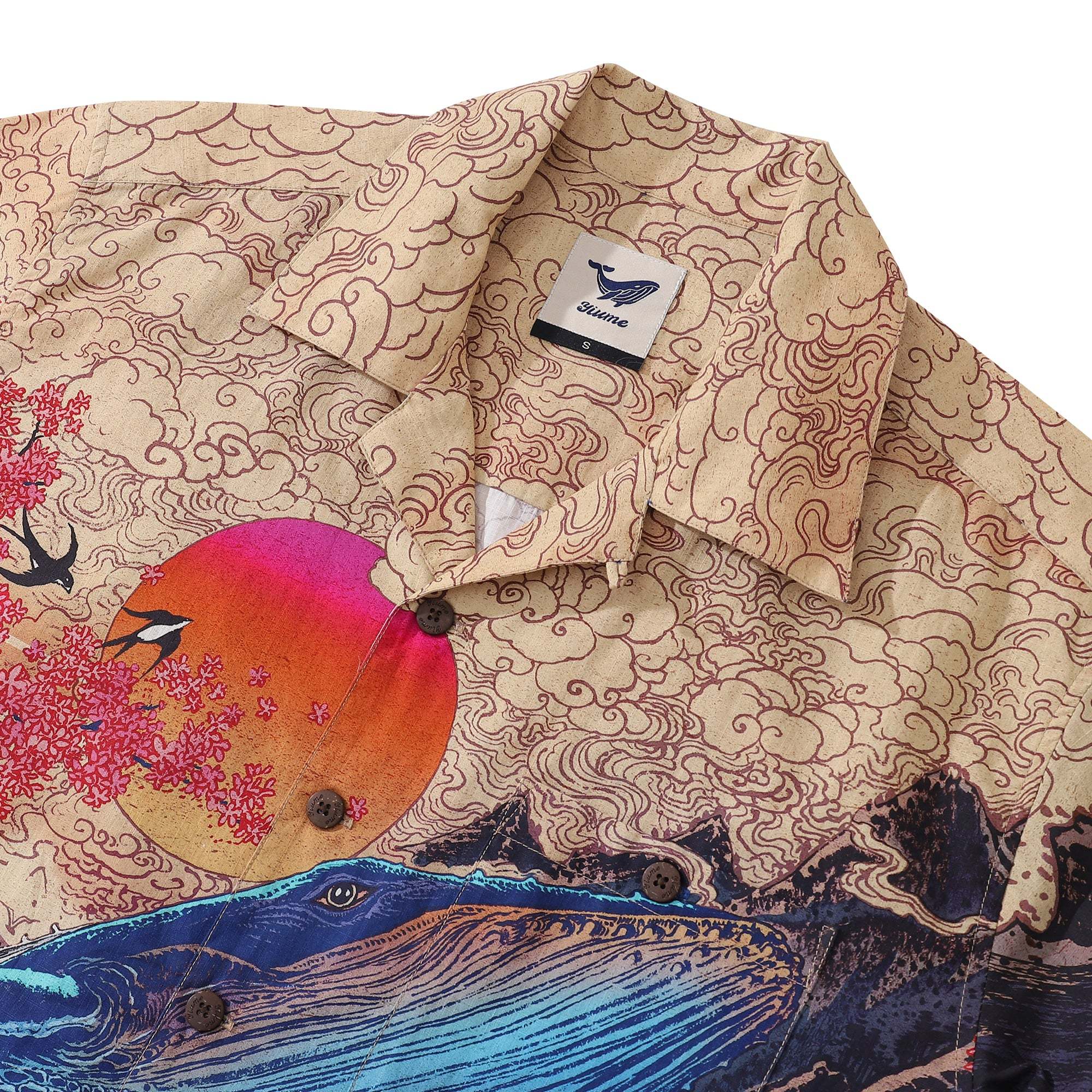 Yiume Ukiyo-e Hawaiian Shirt 100% Cotton Shirt For Men Camp Collar Aloha Shirt Ukiyo-e No6 By Rlon