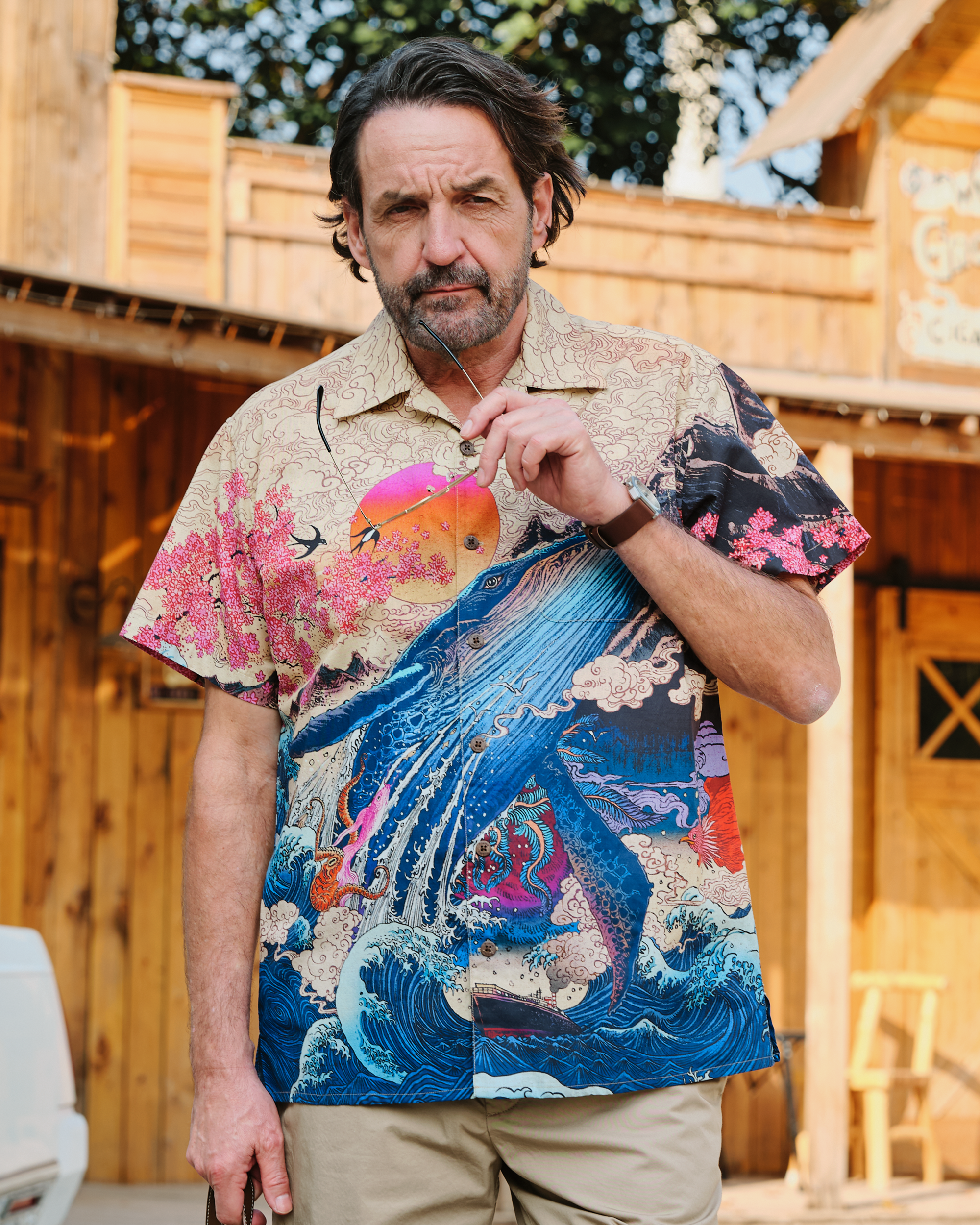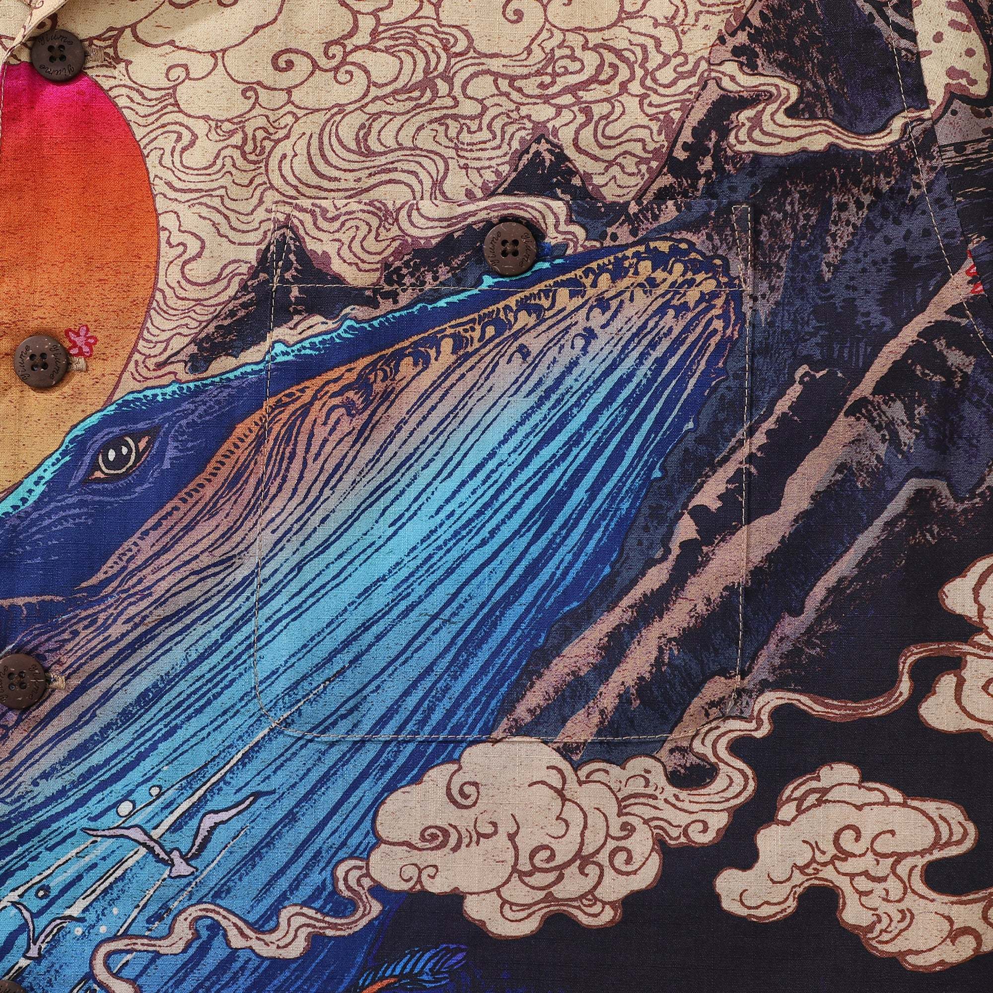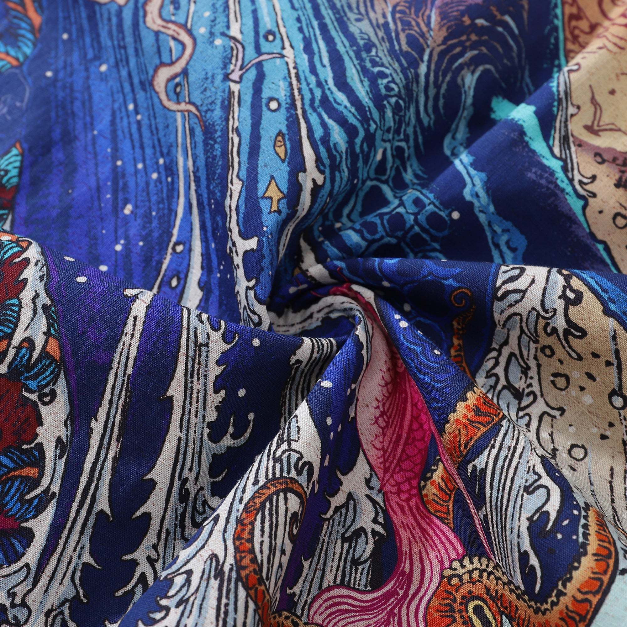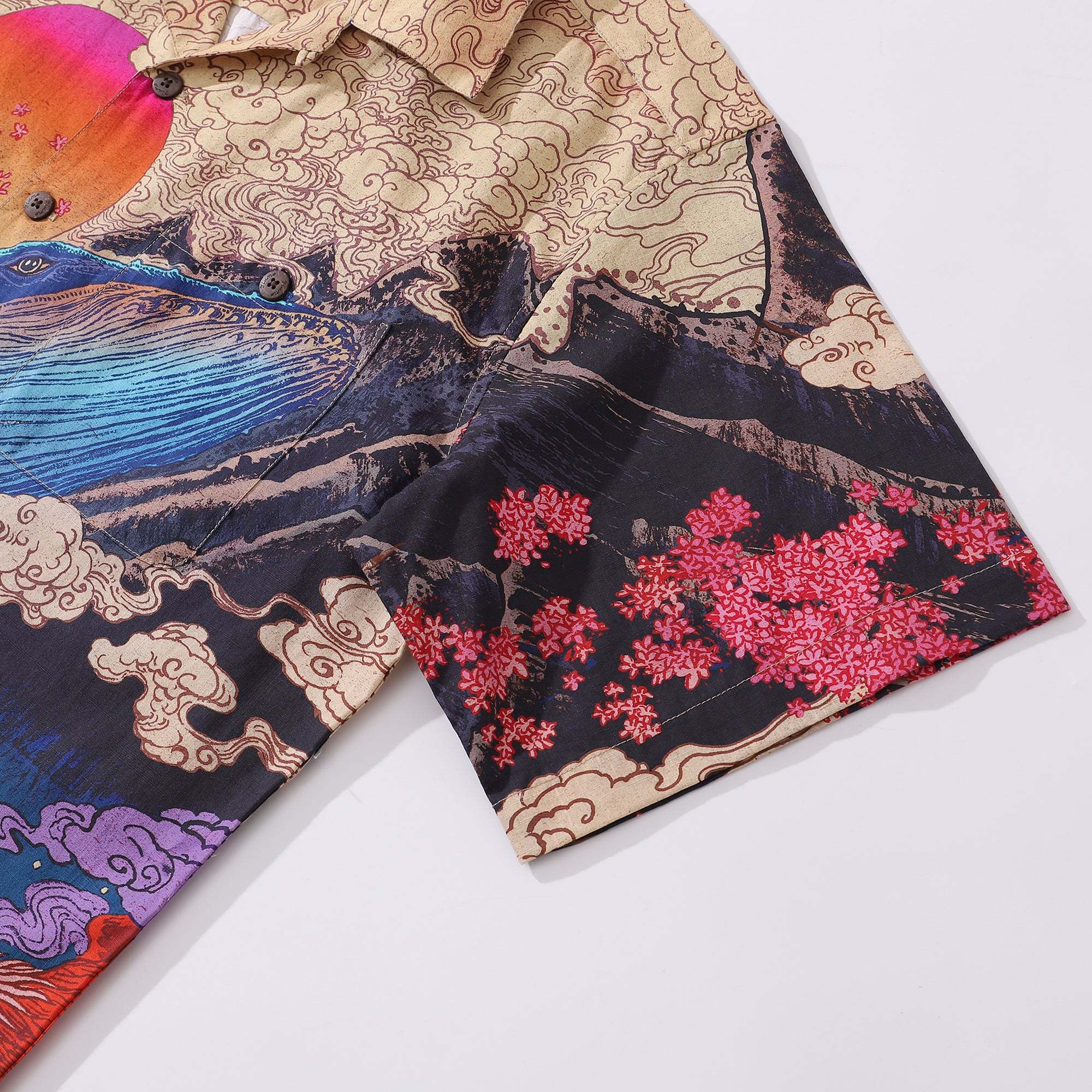 Yiume Ukiyo-e Hawaiian Shirt 100% Cotton Shirt For Men Camp Collar Aloha Shirt Ukiyo-e No6 By Rlon
