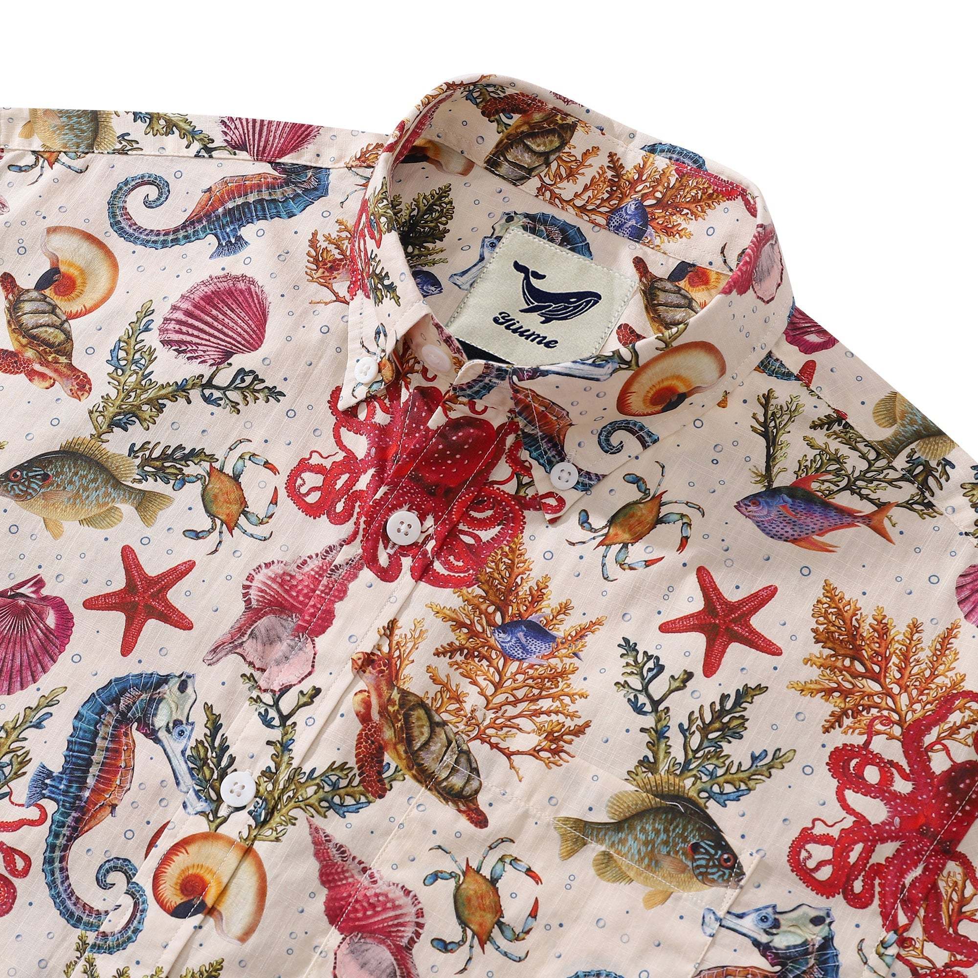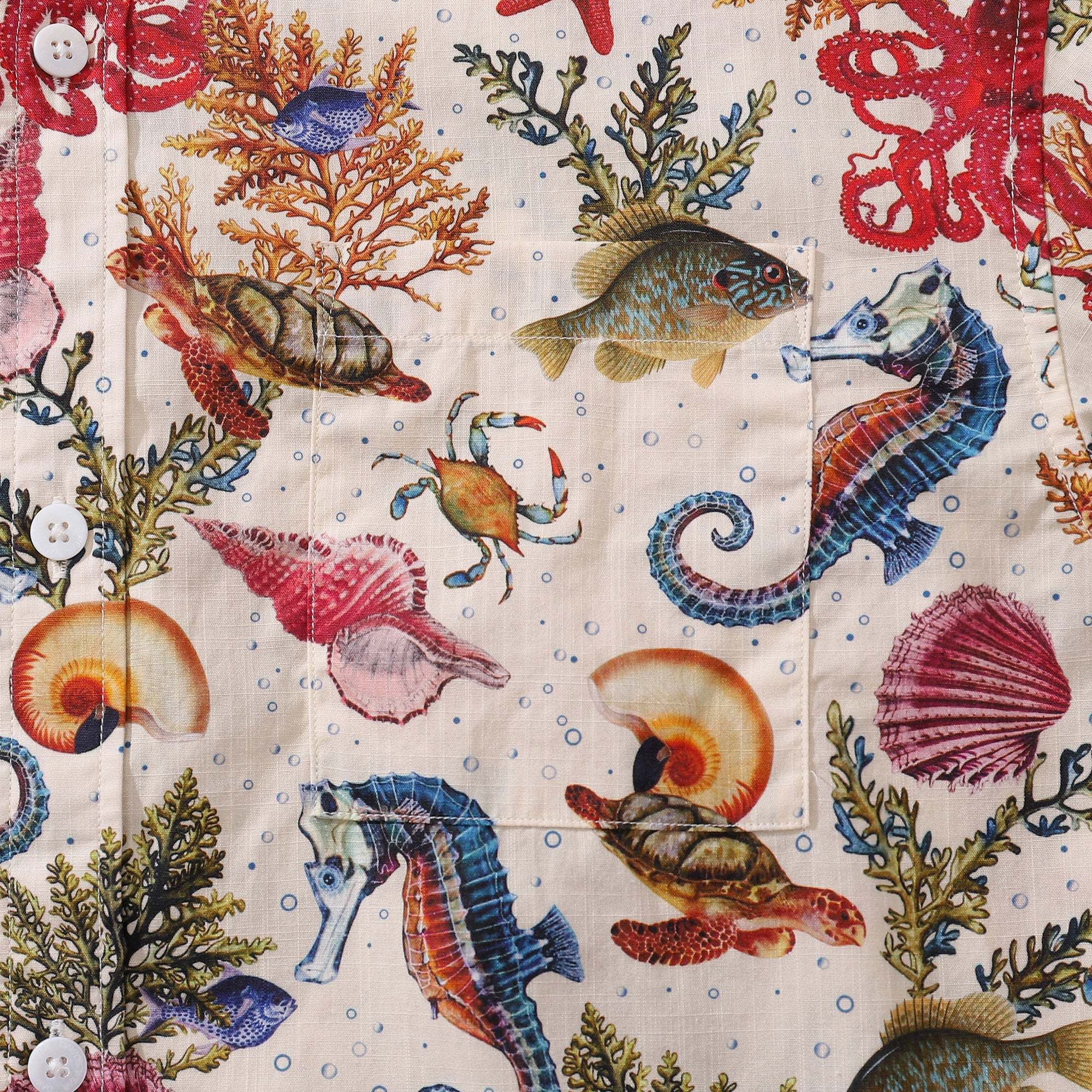 - There is a print mismatch between the left chest pocket and the front placket
