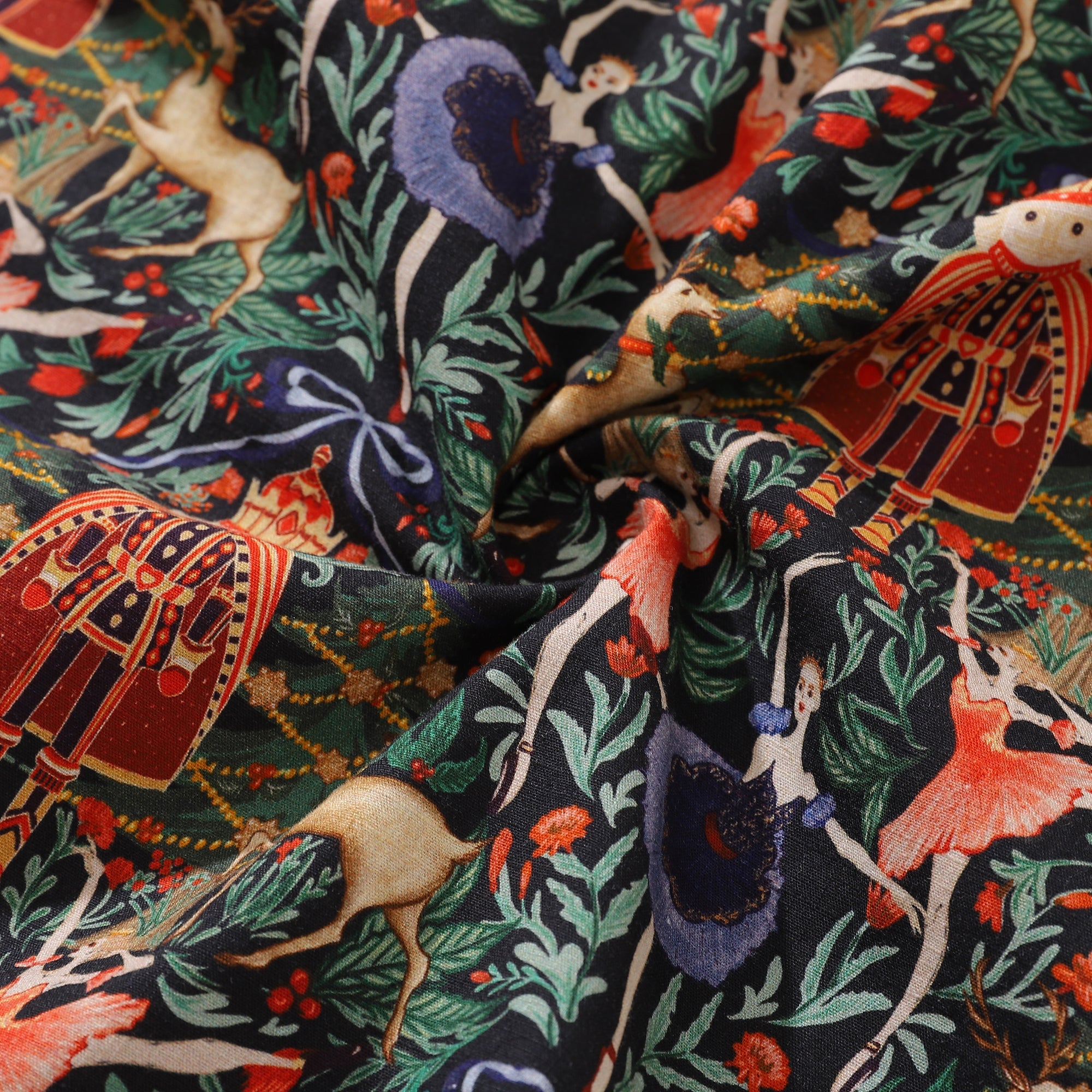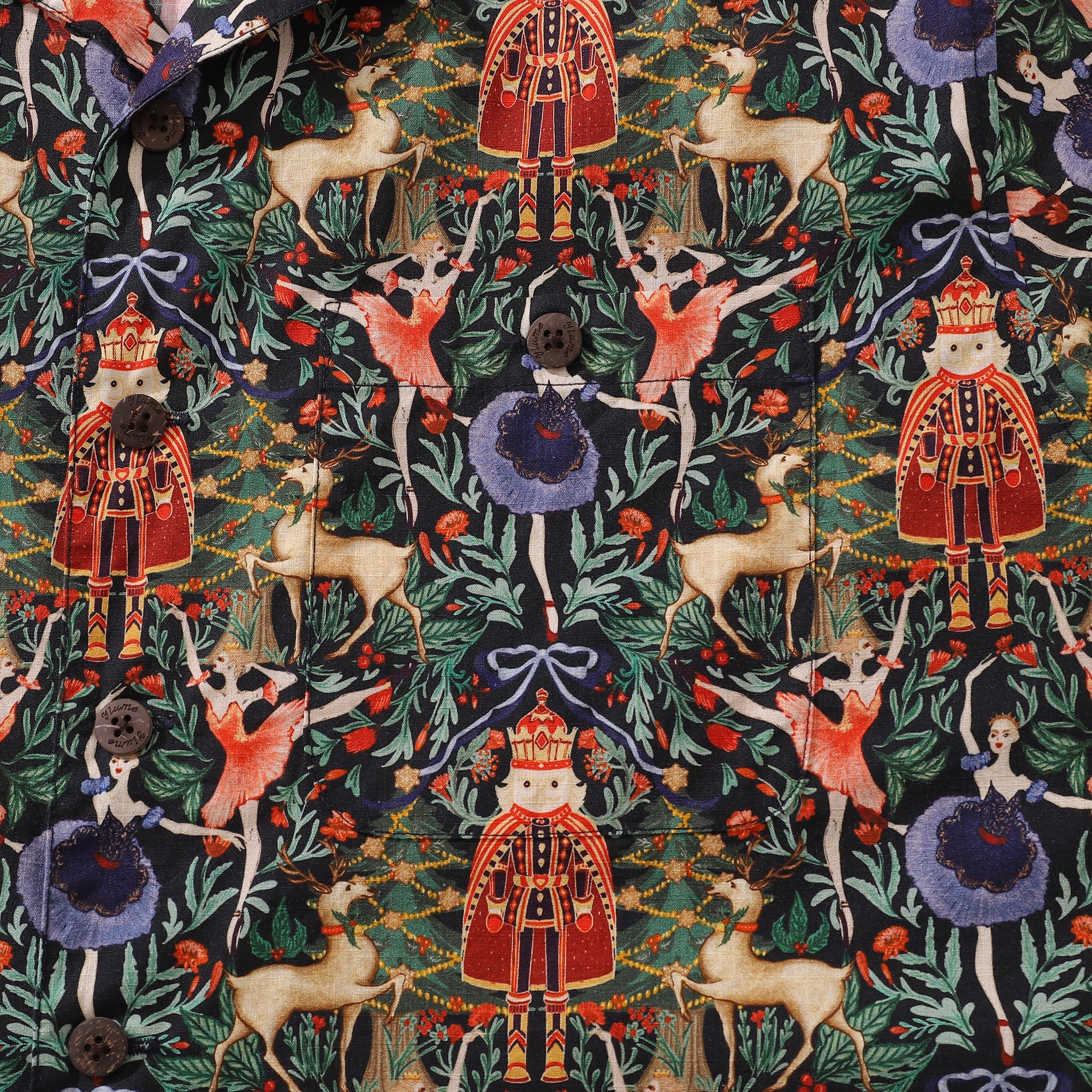 Celebrate the holiday season like a royal family in a fairytale with the design that depicts the scene of the delicate ballerinas spinning around in the whimsical garden, creating a performance to remember!