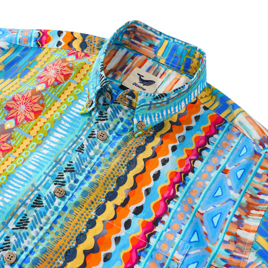 Men's Hawaiian Shirt Dance of the Sea Cotton Button-down Long Sleeve Aloha Shirt