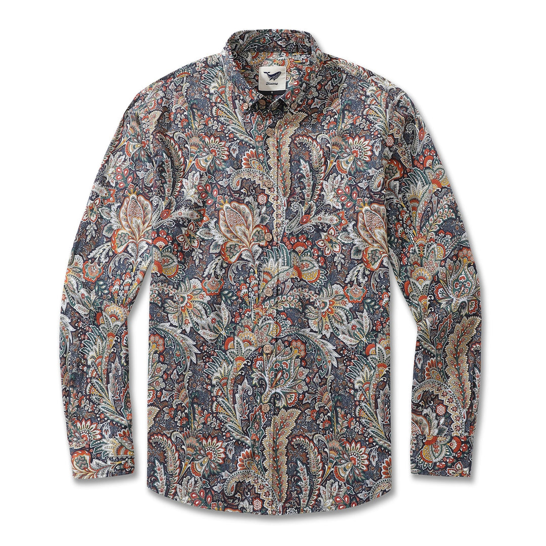 Men's Hawaiian Shirt Scroll Pattern Print Cotton Button-down Long Sleeve Aloha Shirt
