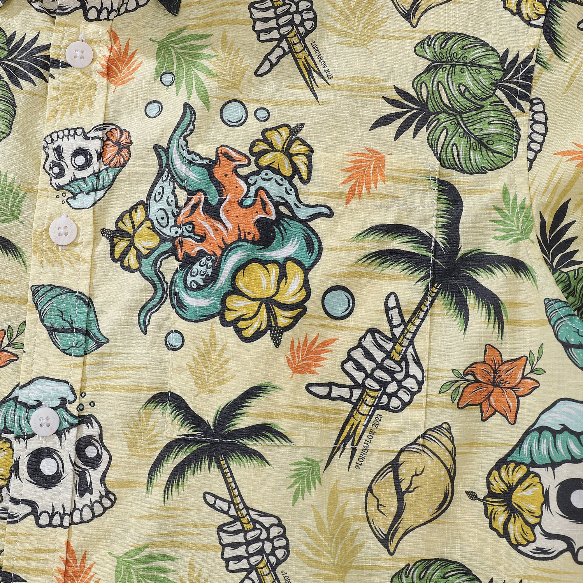 Men's Tropical Hawaiian Shirt 1990s Vintage Skull Shirt Short Sleeve Button-down Aloha Shirt