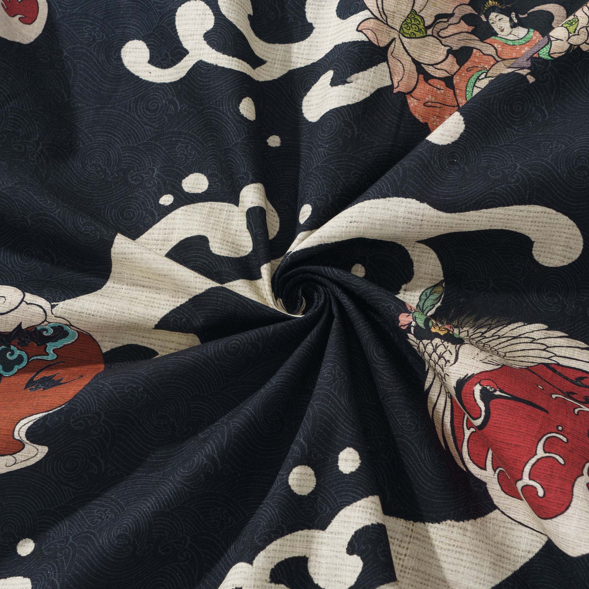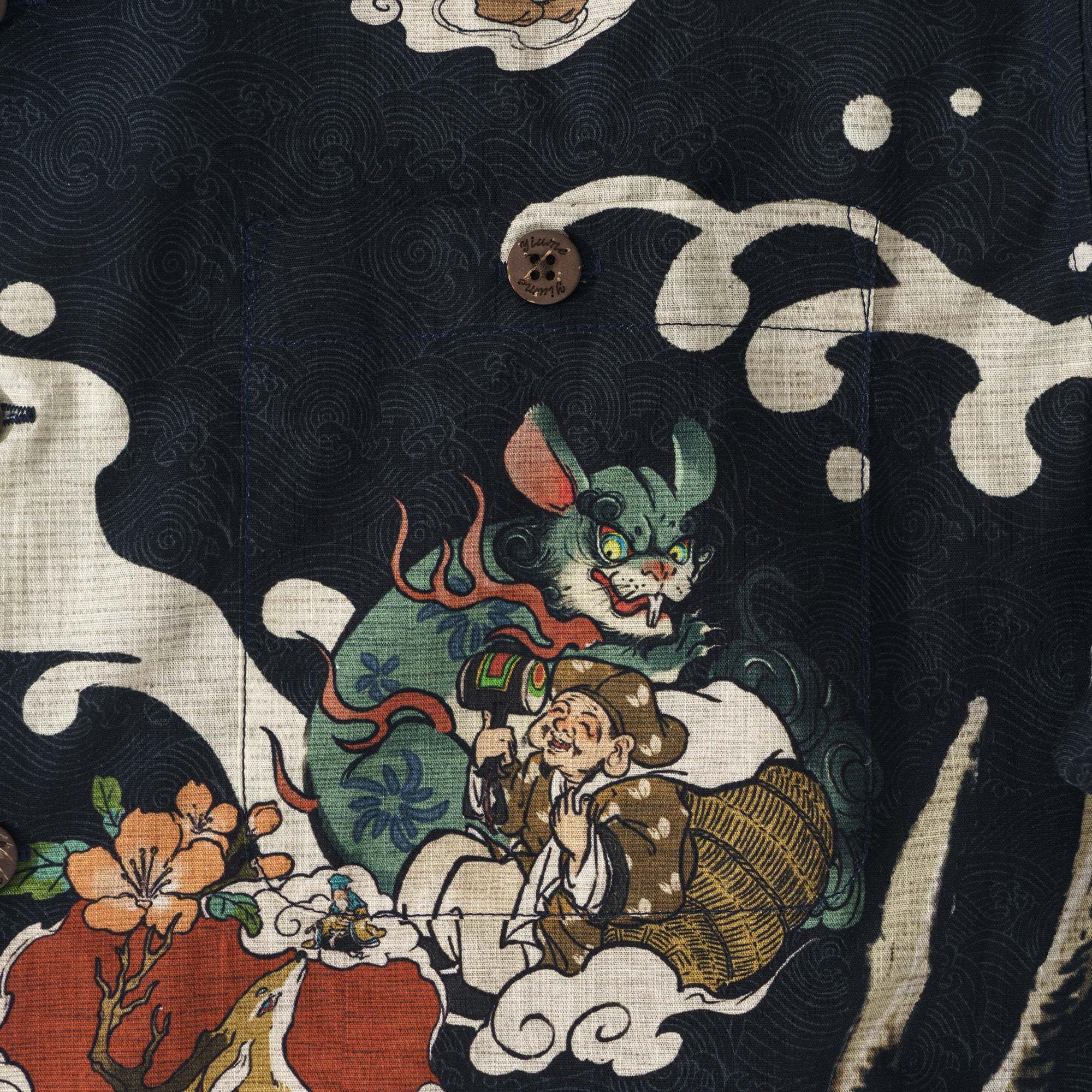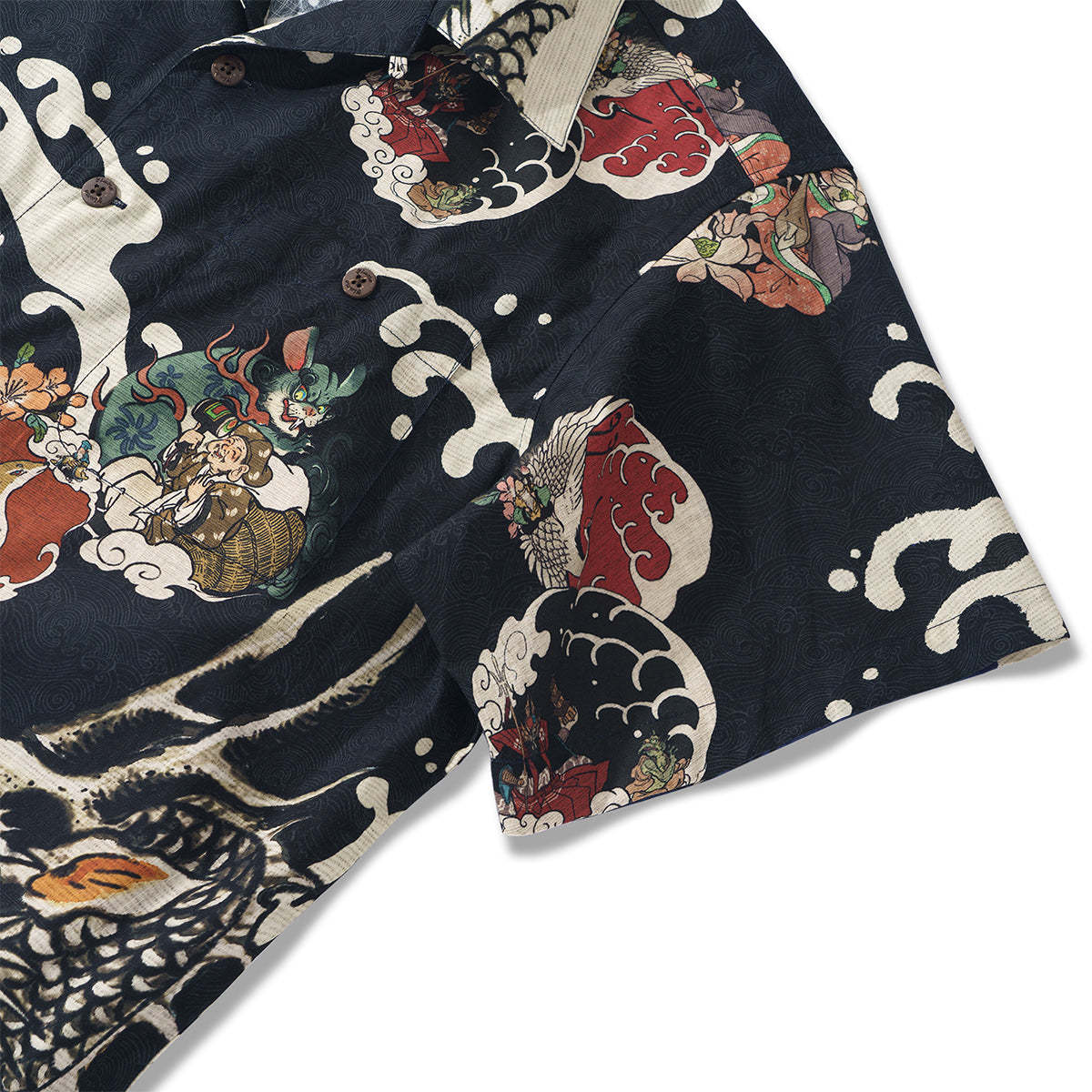 100% Cotton Men's Aloha Shirt Japanese Hawaiian Shirt Short Sleeve Camp Collar Shirt Seven Fortunes Charm Collection
