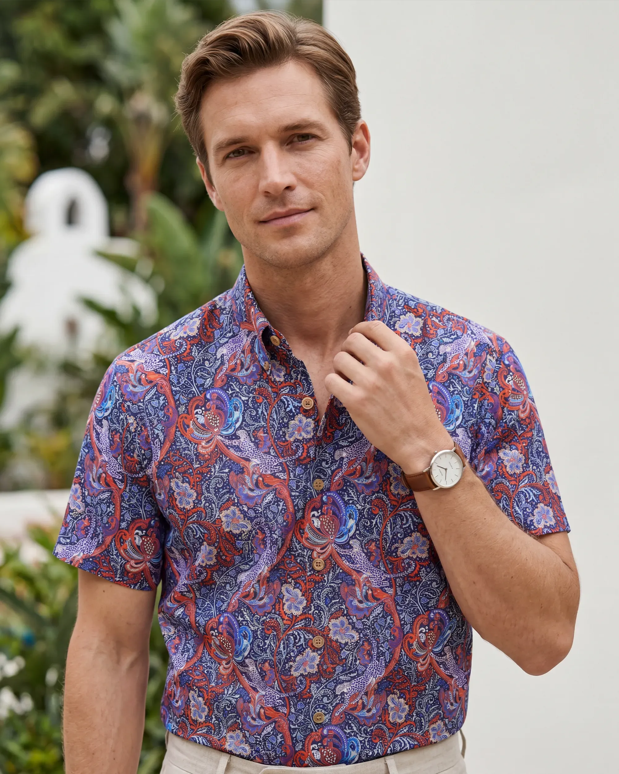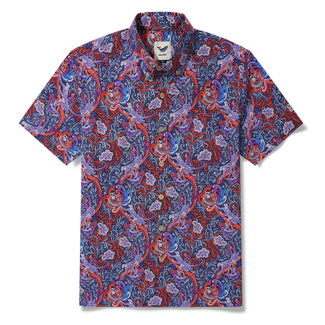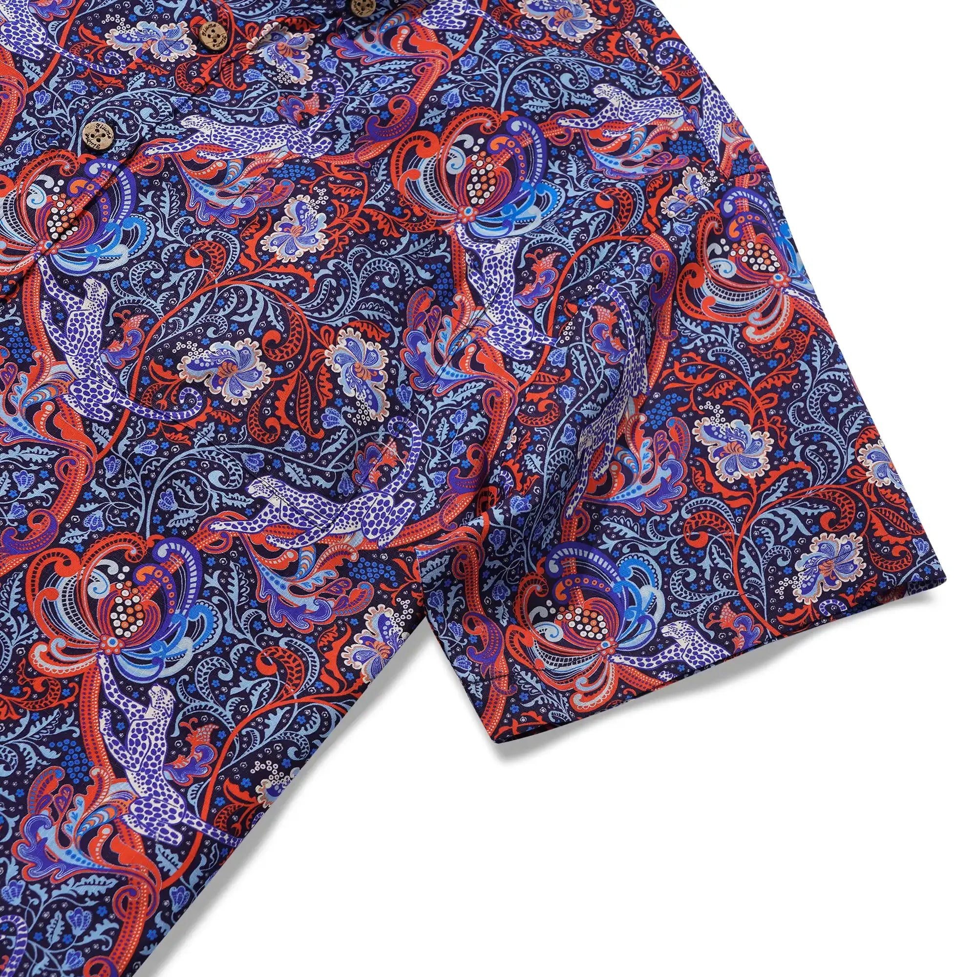 Men's Hawaiian Shirt Short Sleeve Button-down 100% Cotton Purple Aloha Endless Enigma By Bek Shakirov Leopard Paisley