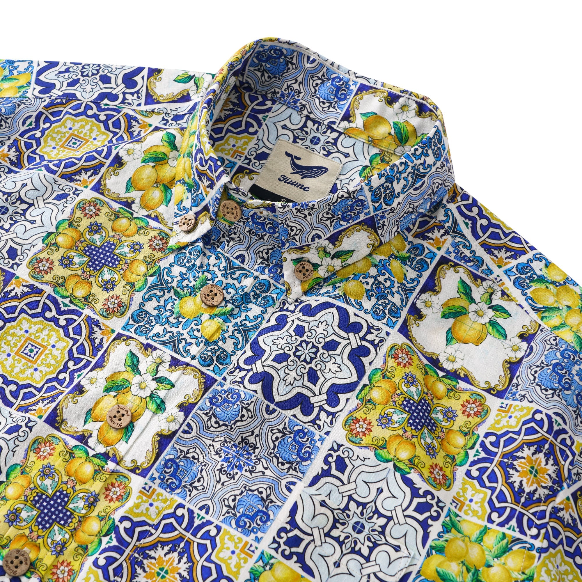 Chemise hawaïenne masculine à manches courtes à manches courtes 100% coton blanc Aloha rêve de Palerme