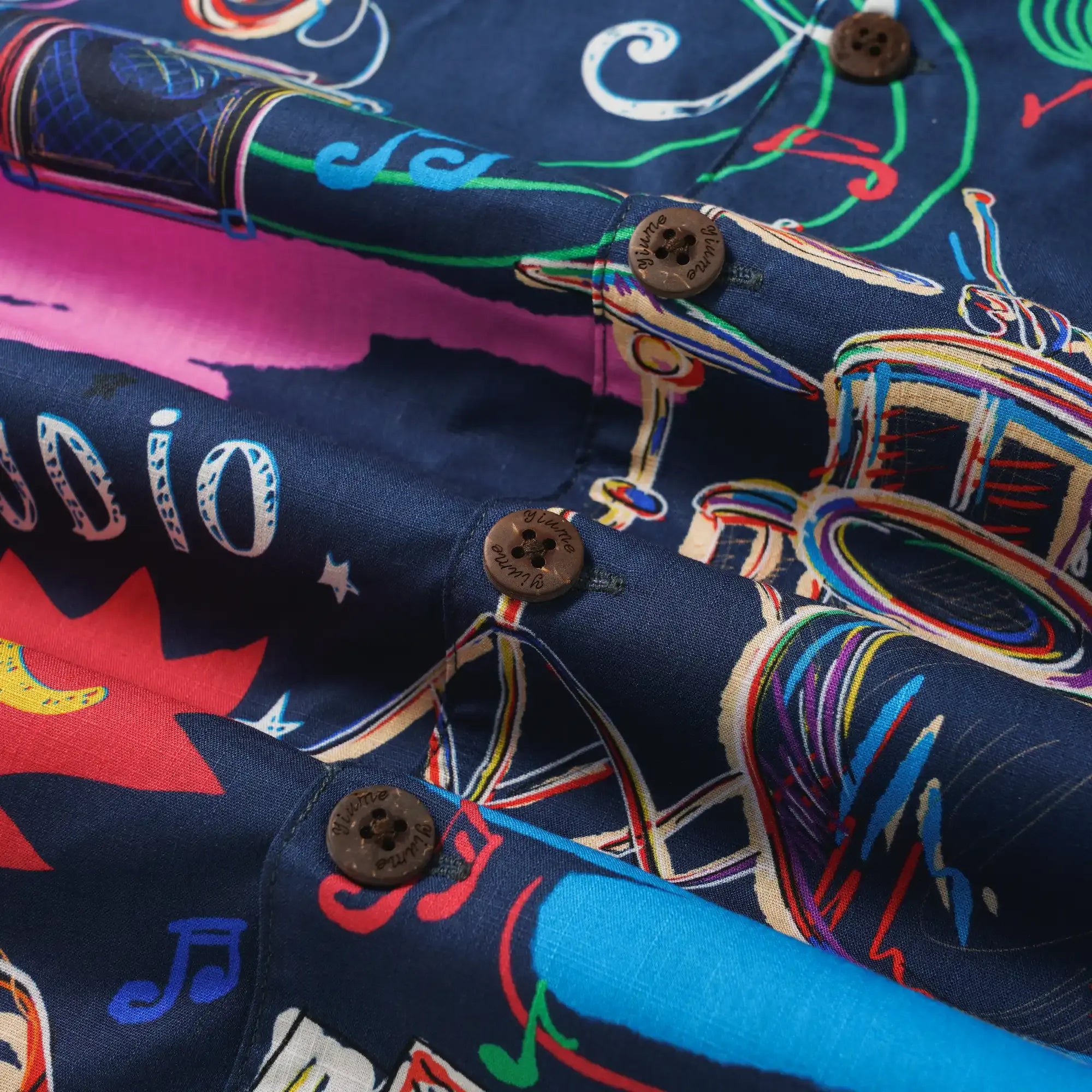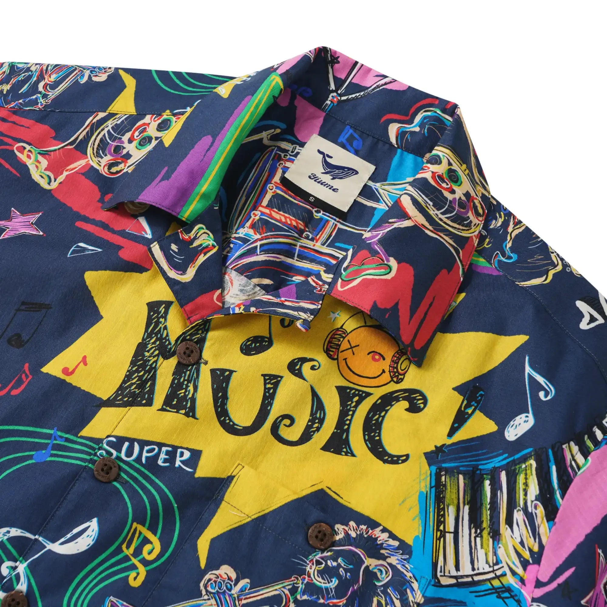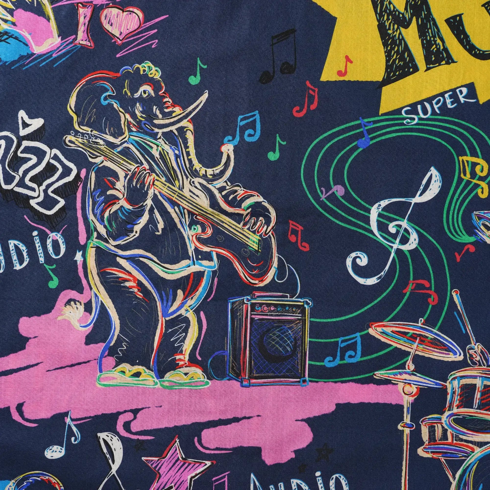 Embrace the vibrant energy of jazz and pop culture with our "Creature Concerto" shirt. Featuring bold graffiti-style lines, elephants on bass, lions on trumpet, and tigers on drums, this modern twist on classic cartoons is a nod to retro-futuristic beats. Neon hues of pink and blue pop against a black backdrop, with piano and saxophone details intertwined with stars and sheet music. "SUPER MUSIC" in retro comic font adds a nostalgic yet fresh touch, embodying a free-spirited, high-energy vibe.