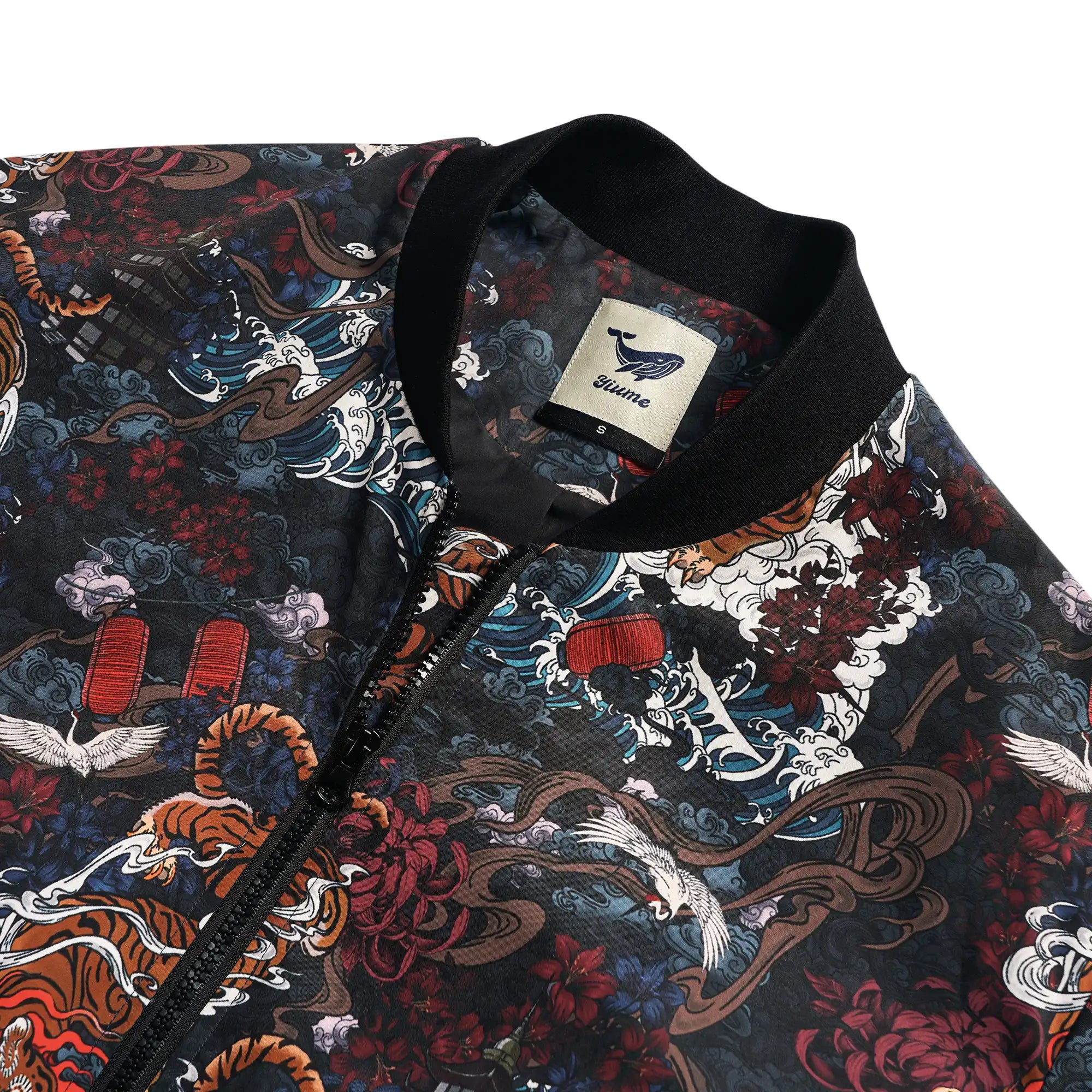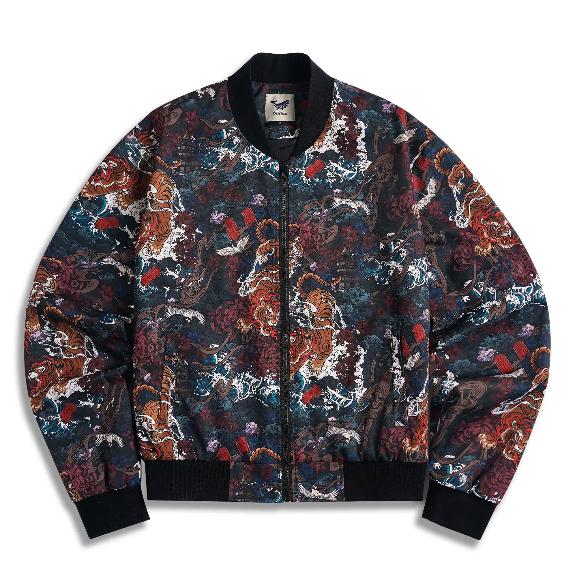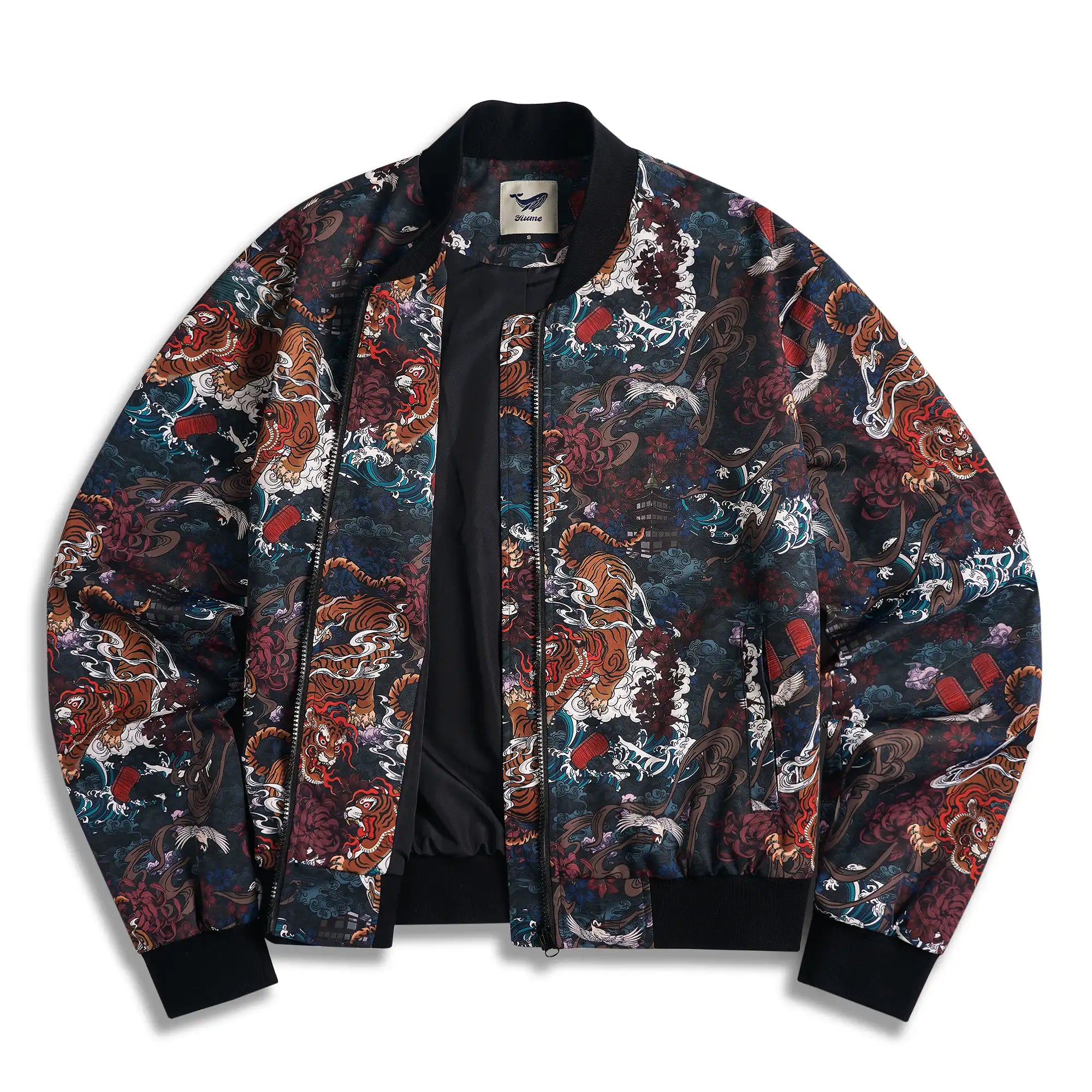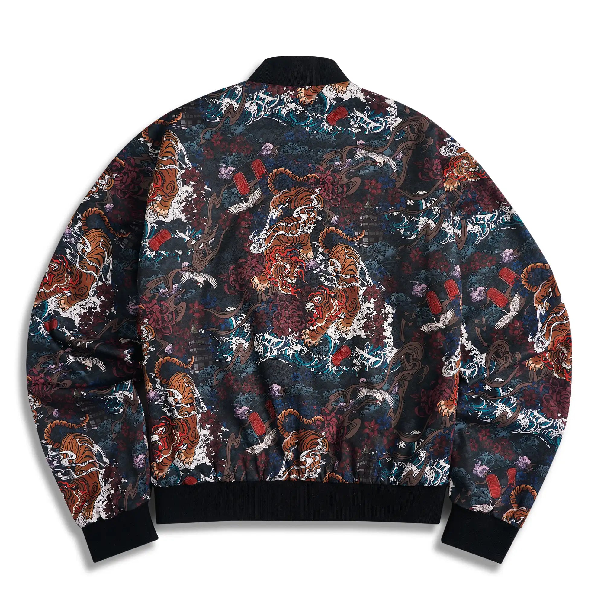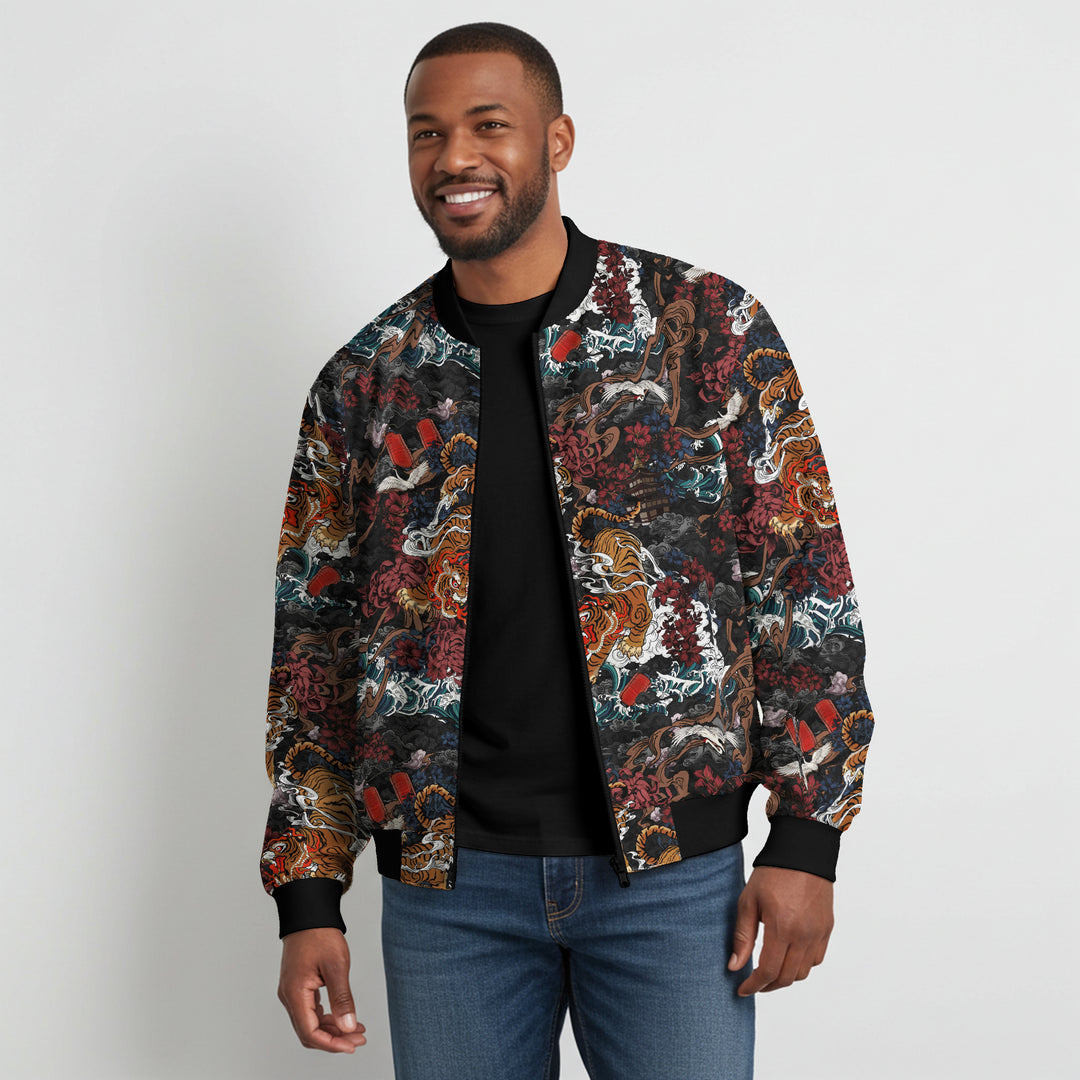 Baseball Jacket/Outerwear 100% Polyester Black Men/Women Unisex Aloha Tiger In The Mist