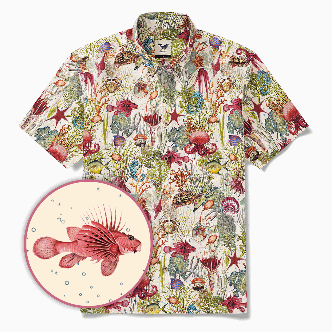 Plongez dans les profondeurs de l'océan avec ce modèle d'inspiration vintage. Sur fond beige, il met en valeur des coraux éclatants, des verts marins et une faune marine ludique comme des méduses, des poulpes et des étoiles de mer. Rehaussé de bulles bleues, ce t-shirt allie charme rétro et merveilles sous-marines, offrant un hommage intemporel à la beauté de la mer. Parfait pour ceux qui apprécient un style artistique inspiré de la nature.