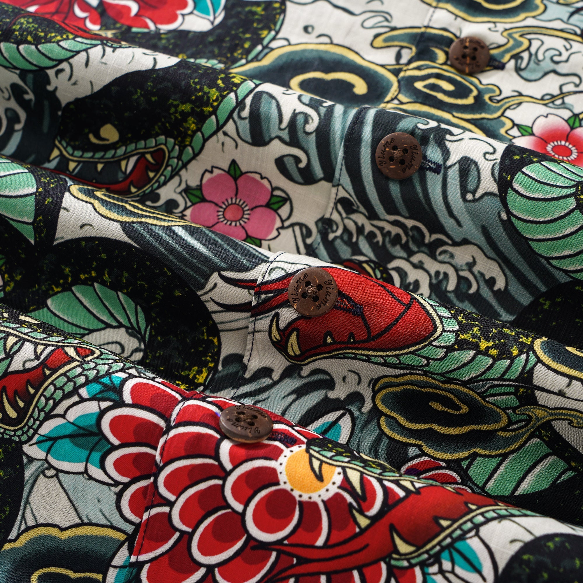 - Poche poitrine gauche et patte de boutonnage assorties à l'imprimé
