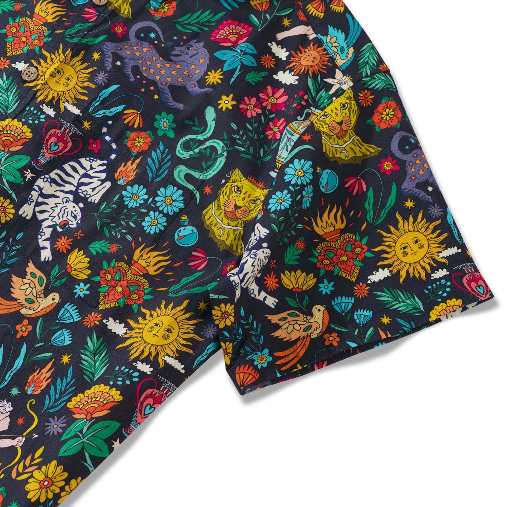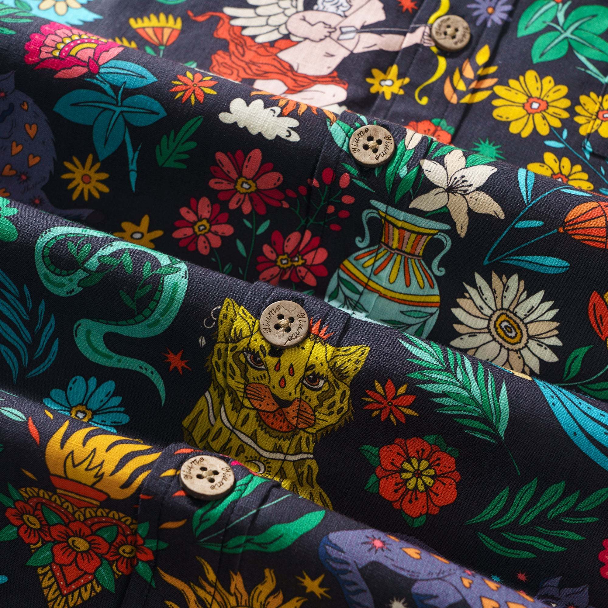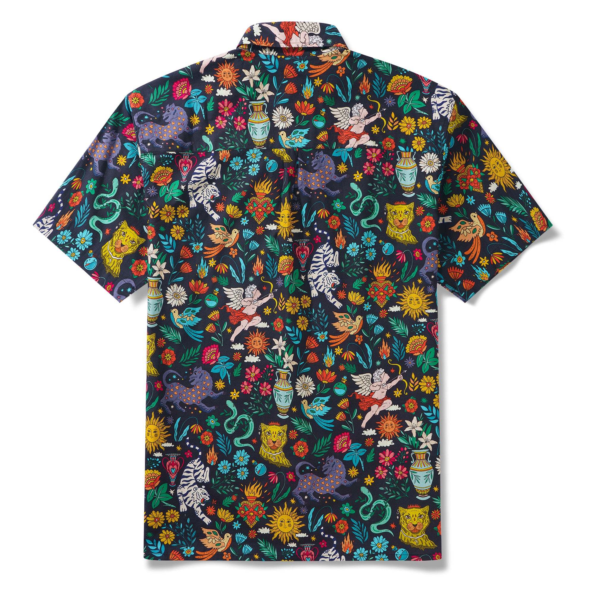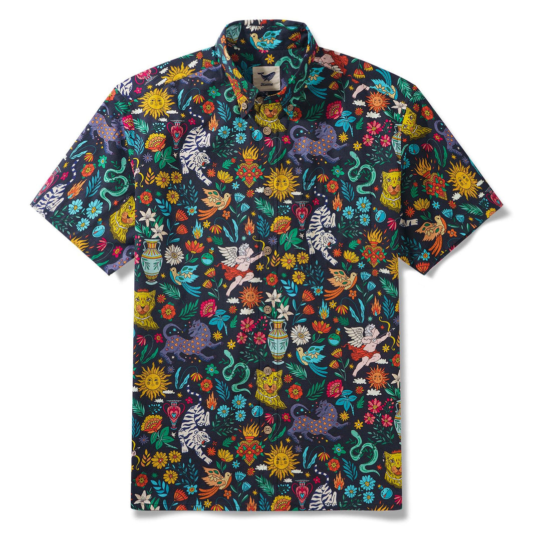 Aventure Mythique de la Saint-Valentin Chemise à Manches Courtes en Coton 100% pour Hommes Boutonnée Aloha Hawaïenne