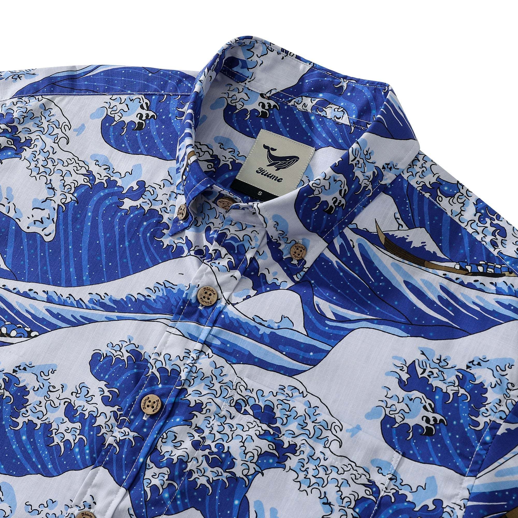 Ce design de chemise hawaïenne est un véritable chef-d'œuvre qui capture la puissance impressionnante de la nature, inspiré par l'iconique estampe sur bois de l'artiste japonais légendaire Katsushika Hokusai (1760-1849). Présentant une bataille épique entre des marins courageux et des vagues gigantesques au large de la côte de Kanagawa, cette chemise est sûre de vous faire sentir comme un aventurier intrépide prêt à conquérir tous les défis qui se présentent à vous.