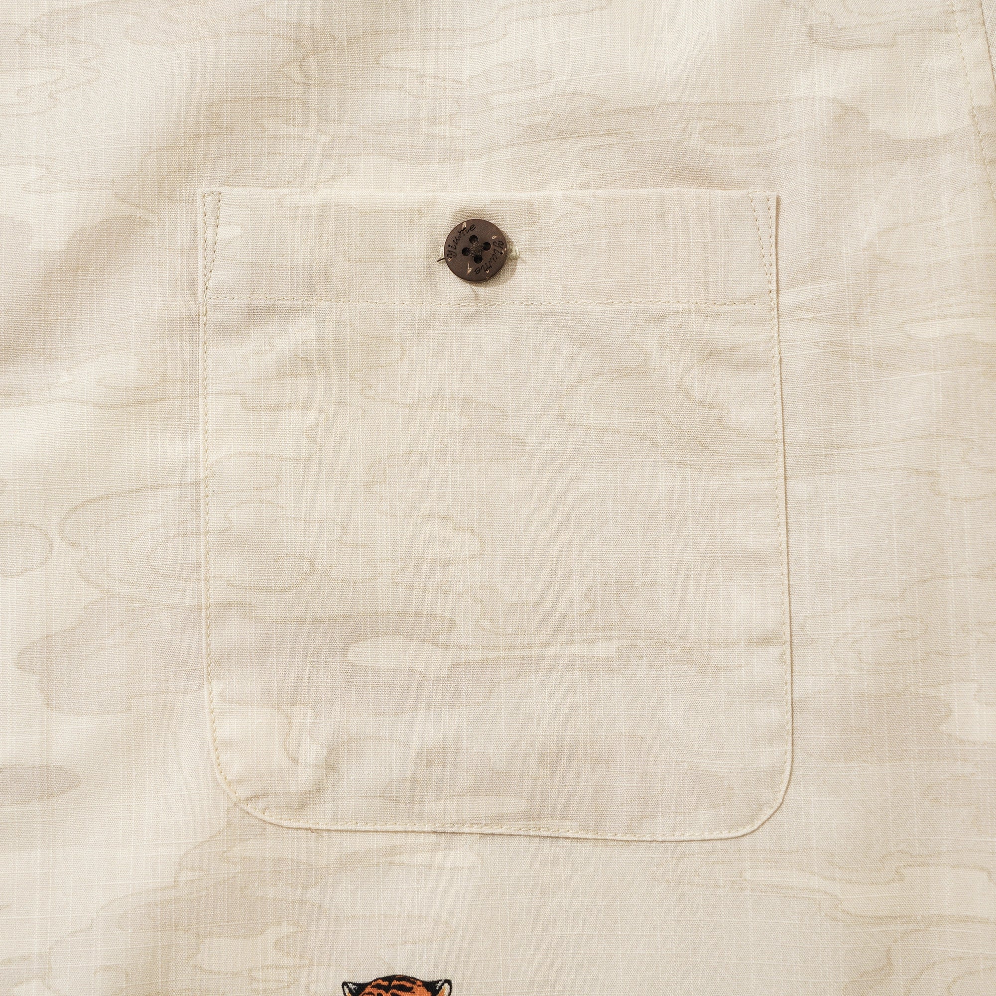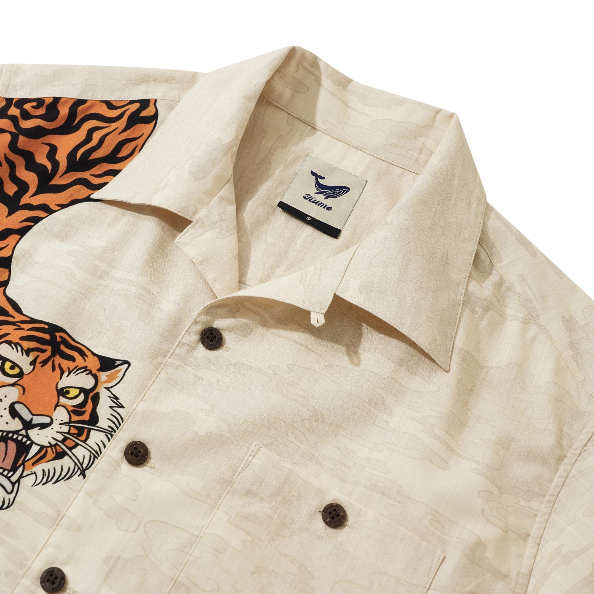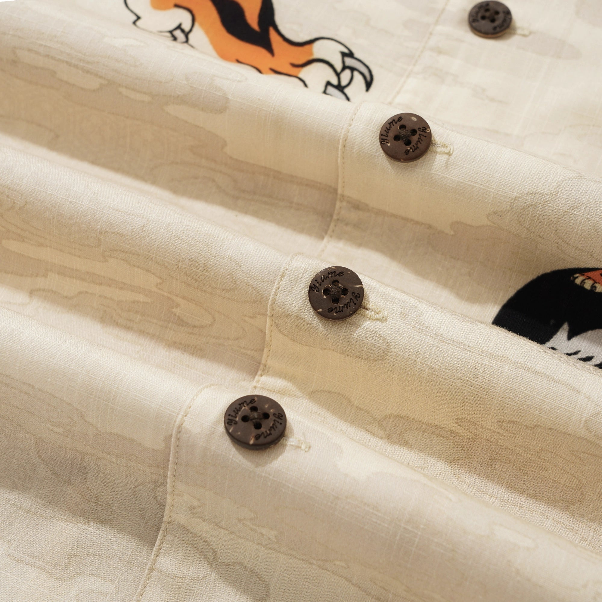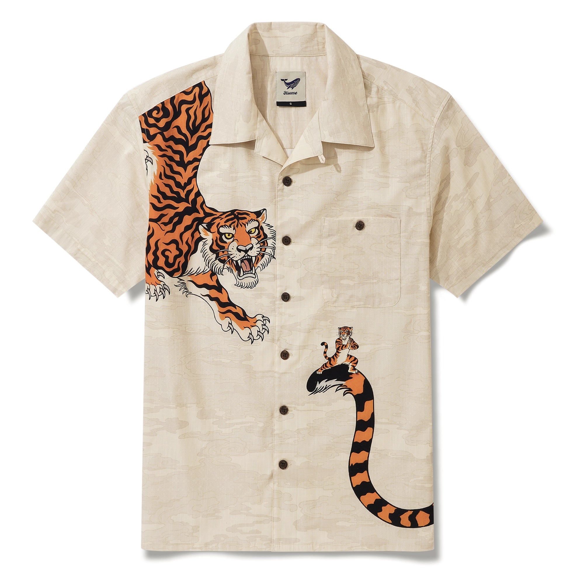 Men's Hawaiian Shirt Short Sleeve Camp Collar 100% Cotton Black Aloha Mighty Tiger And Mini Guardian