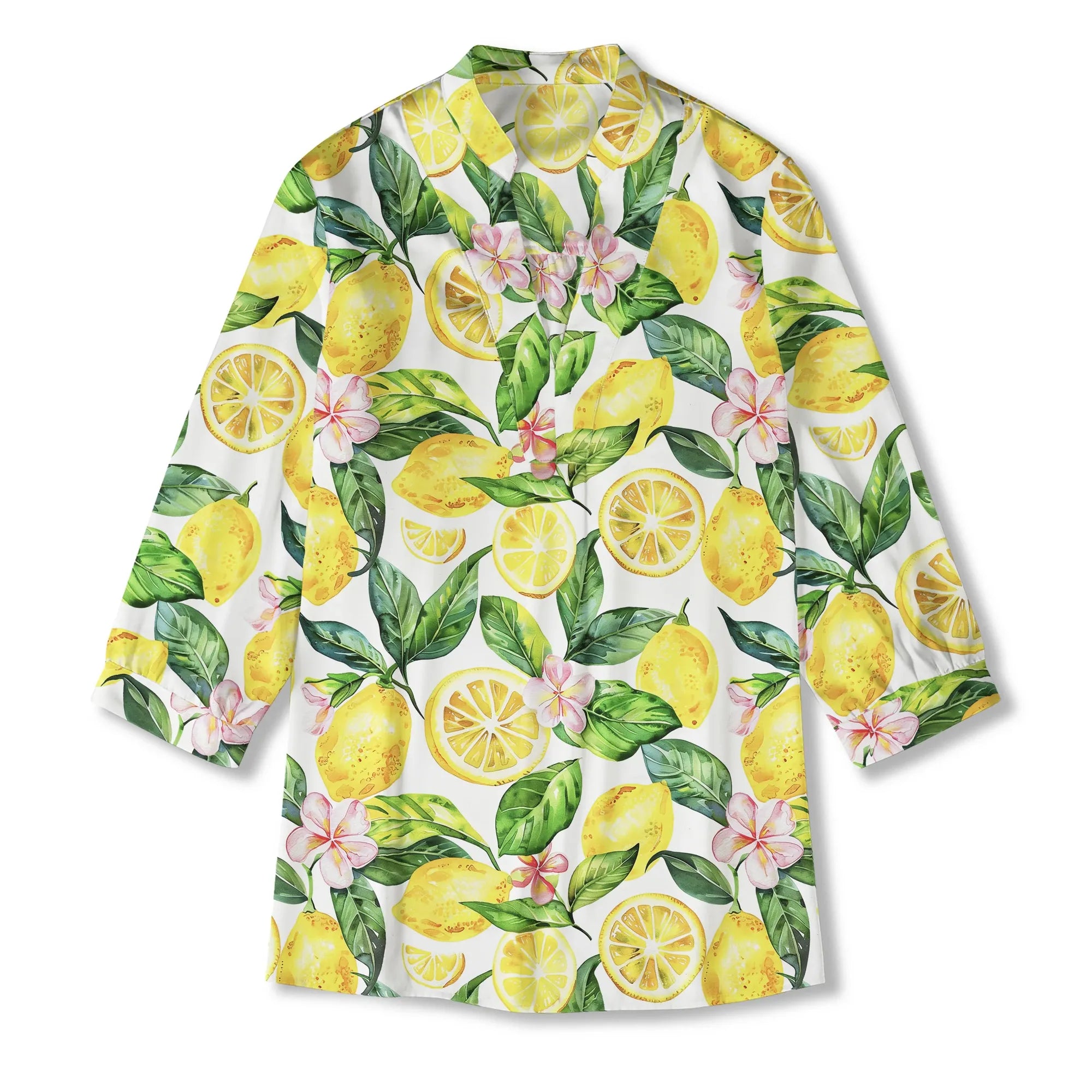 Women's Casual Blouse 3/4 Sleeve V-neck Shirt Collar 100% Lyocell Yellow Aloha Lemon Summer Essence